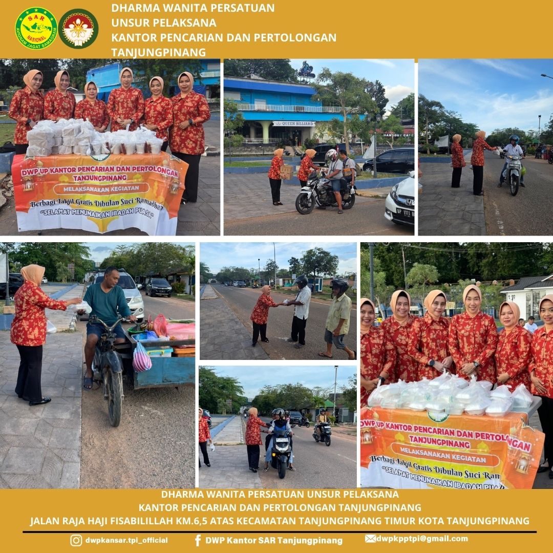 Jum'at, 06 Maret 2026 , Dharma Wanita Unsur Pelaksana Kantor Pencarian dan Pertolongan Tanjungpinang Melaksanakan Kegiatan Berbagi Takjil Gratis dibulan Suci Ramadan pada Minggu Kedua. Adapun Kegiatan Tahunan Ini diikuti Anggota DWP UP Serta Pegawai Kantor Pencarian dan Pertolongan Tanjungpinang.
