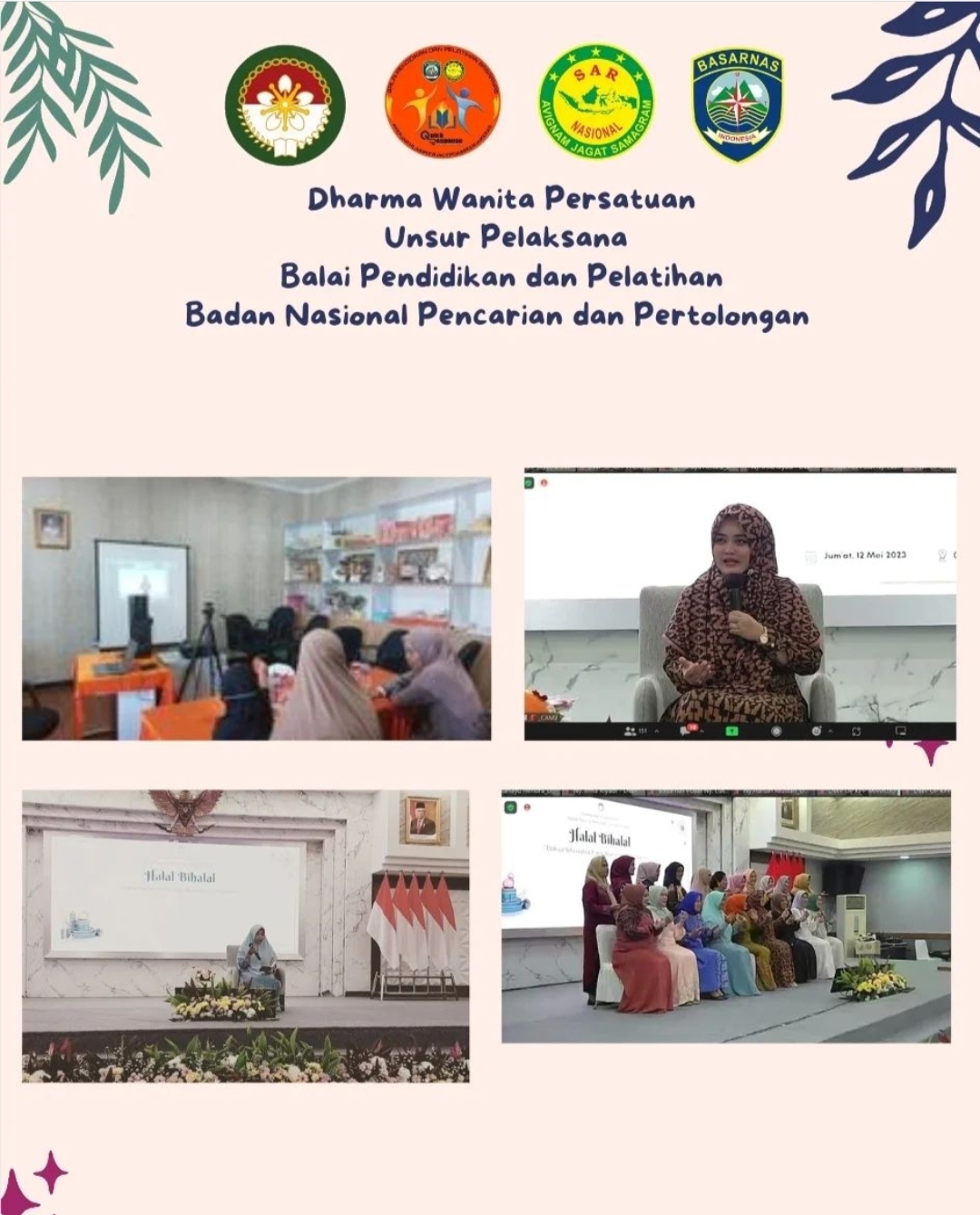 DWP UP Balai Pendidikan dan Pelatihan Badan Nasional Pencarian dan Pertolongan mengikuti acara halal bihalal Idul Fitri 1444 H dengan tema "Perkuat Silaturahmi untuk Harmonisasi Organisasi" bersama ustadzah Liza Azizah yang diselenggarakan oleh DWP Basarnas secara virtual.