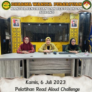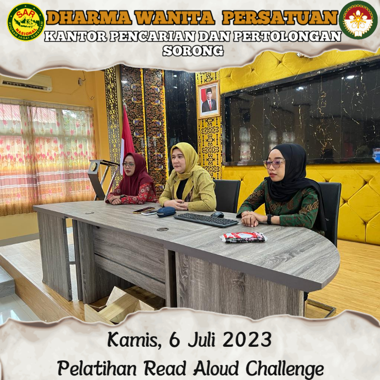 Kamis, 6 Juli 2023 Ketua bersama 2 Anggota mengikuti Seminar*Pelatihan Read Aloud Challenge* via Streaming Youtube yang di adakan oleh Dharma Wanita Persatuan Pusat dalam Rangka Merealisasikan Program kerja Bid. Pendidikan dalam Kegiatan Literasi:Peluncuran Gerakan Keluarga Cerdas Membaca