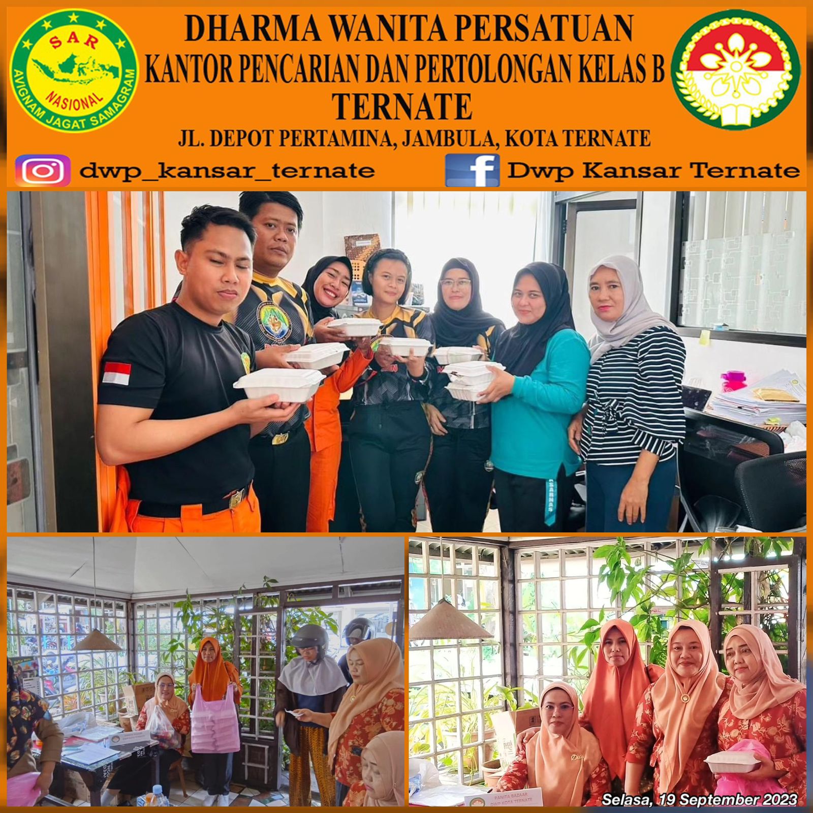 Selasa, 19 September 2023 DWP UP. Kantor Pencarian dan Pertolongan Ternate mengikuti kegiatan pengambilan dan penyerahan Bazar yang dilaksanakan oleh DWP Kota Ternate.