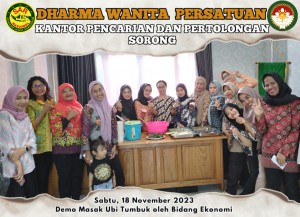 Sabtu, 18 November 2023 Wakil Ketua Ny. Ula Hendry bersama anggota mengikuti Demo Cara Pengolahan dan Pembuatan Keladi Tumbuk Serta pembahasan persiapan giat Hut yang di adakan oleh DWP KOTA SORONG. Di ikuti oleh 16 orang.