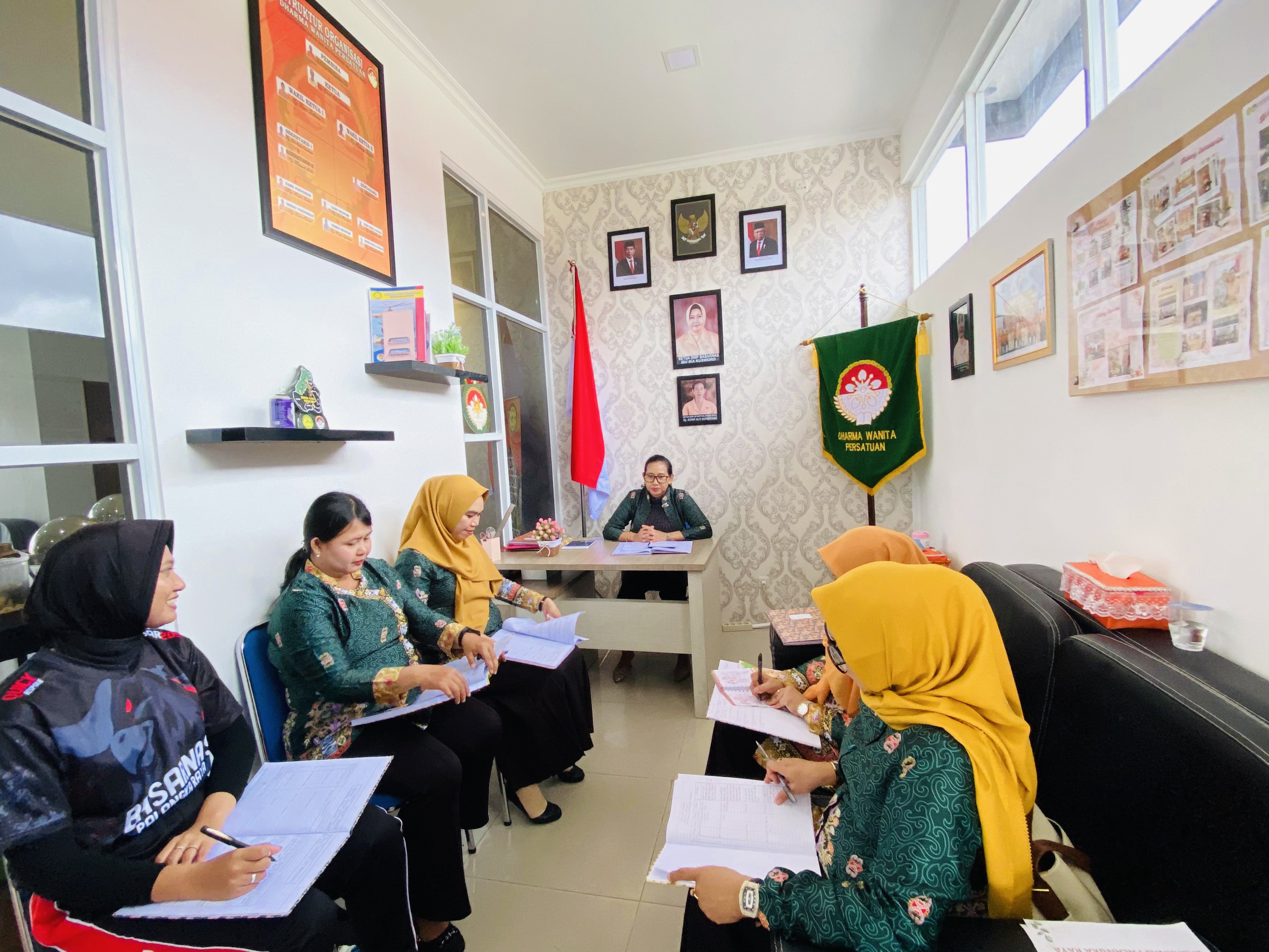 Pada Hari Jum’at, 19 Januari 2024 Ketua DWP UP KPP Palangka Raya, Ny. Anak Agung Konik Alit Supartana bersama pengurus melaksanakan rapat awal tahun dengan agenda pengarahan program kerja tahun 2024 dan perkenalan anggota baru DWP UP KPP Palangka Raya yaitu Ny. Intan Rizali