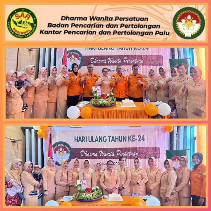 Giat, Jum'at 08 Desember 2023. Dharma Wanita Persatuan UP KPP Palu memperingati HUT ke-24 Dharma Wanita Persatuan dengan tema " Peran Strategis Perempuan Dalam Pembangunan Berkelanjutan". Kegiatan ini dilaksanakan di ruang rapat lantai 2 Kantor Pencarian dan Pertolongan Palu.