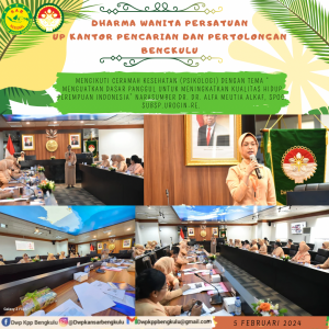 Ketua DWP UP KPP Bengkulu Ny. Rosna Muslikun mengikuti Ceramah Kesehatan (Psikologi) dengan tema “ Menguatkan Dasar Panggul untuk meningkatkan Kualitas Hidup Perempuan Indonesia” narasumber Dr. dr. Alfa Meutia Alkaf, SpOG, Subsp.Urogin-RE.