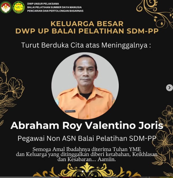 eluarga Besar DWP UP Balai Pelatihan SDM PP turut berduka cita atas meninggalnya pegawai Non ASN pak abraham roy valentino joris. Semoga amal ibadahnya diterima Tuhan YME dan keluarga yang di tinggalkan diberi ketabahan, keikhlasan dan kesabaran.... Aamiin..