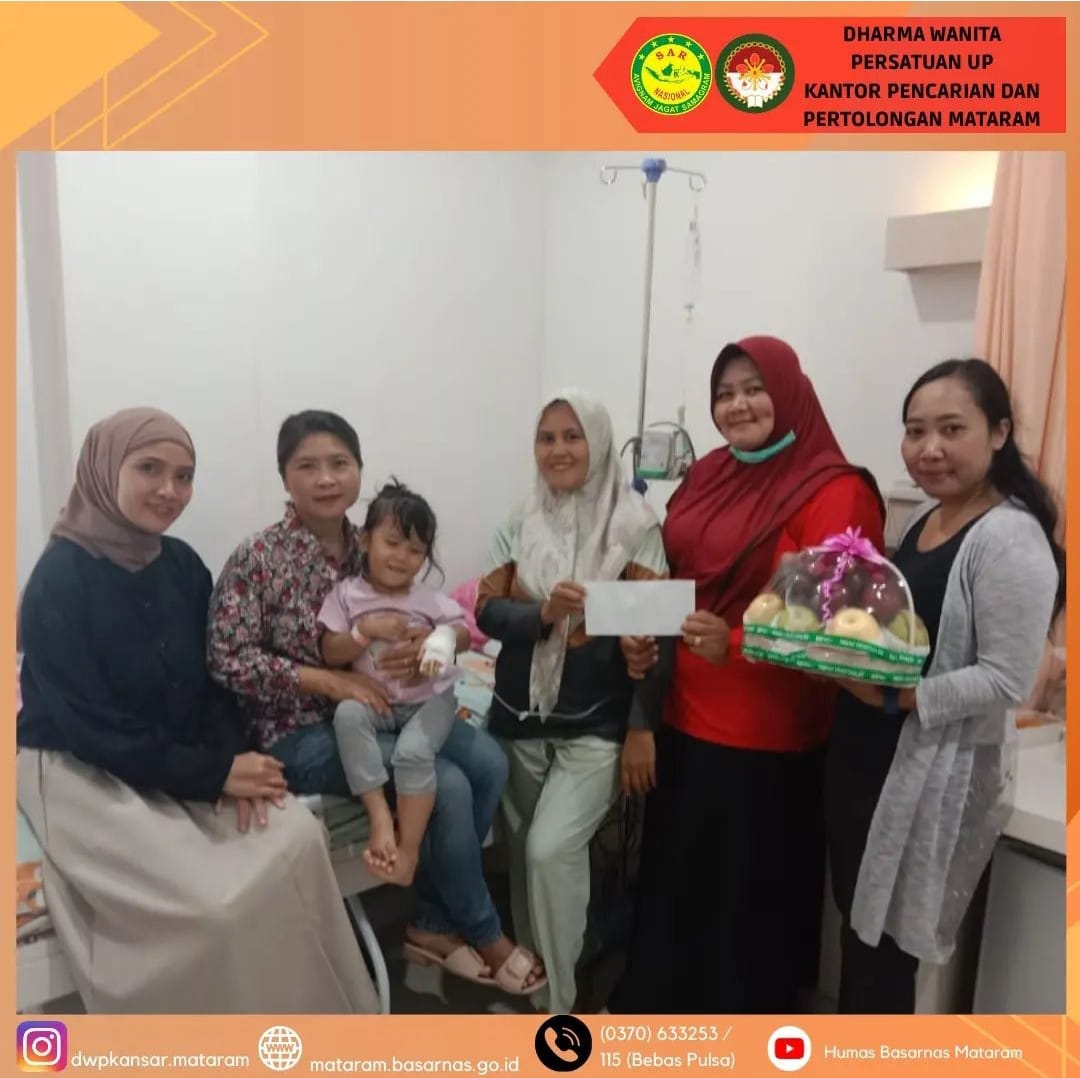 Pada tanggal 19 Mei 2024, 4 orang anggota Bidang Sosial DWP UP Kantor Pencarian dan Pertolongan Mataram mengujungi ananda Shireen putri dari Ny Aprilia Rijatul Fikri yang dirawat di RSIA Permata Hati