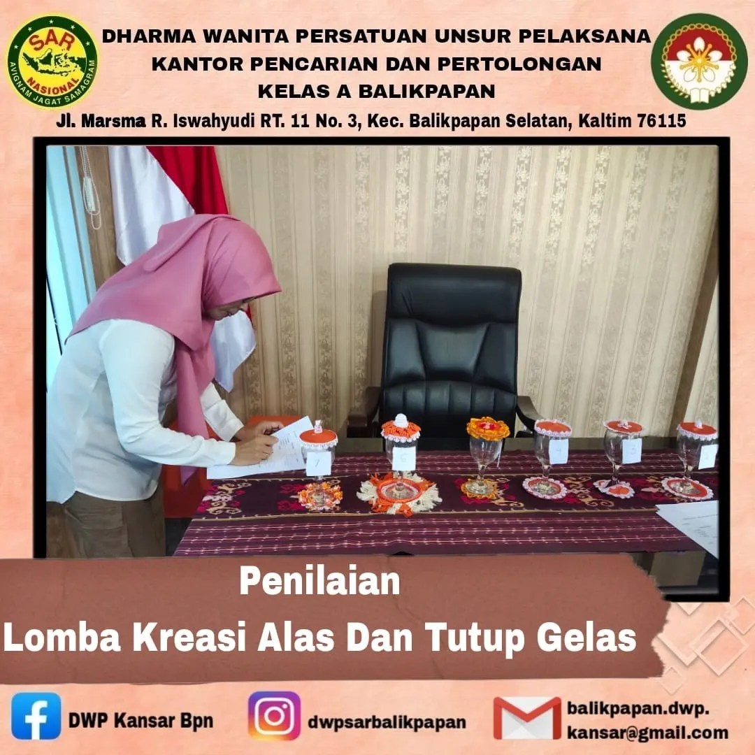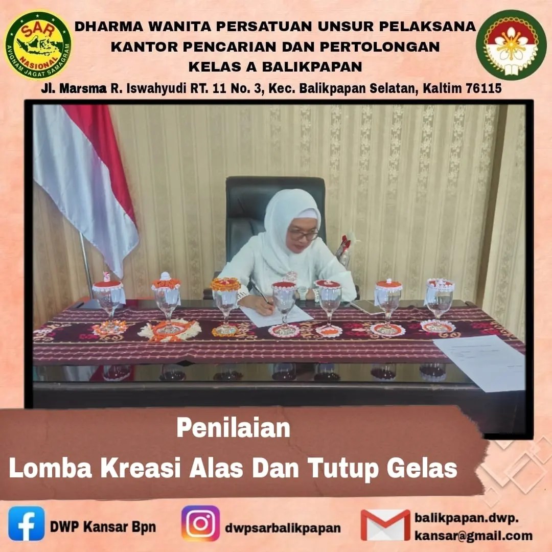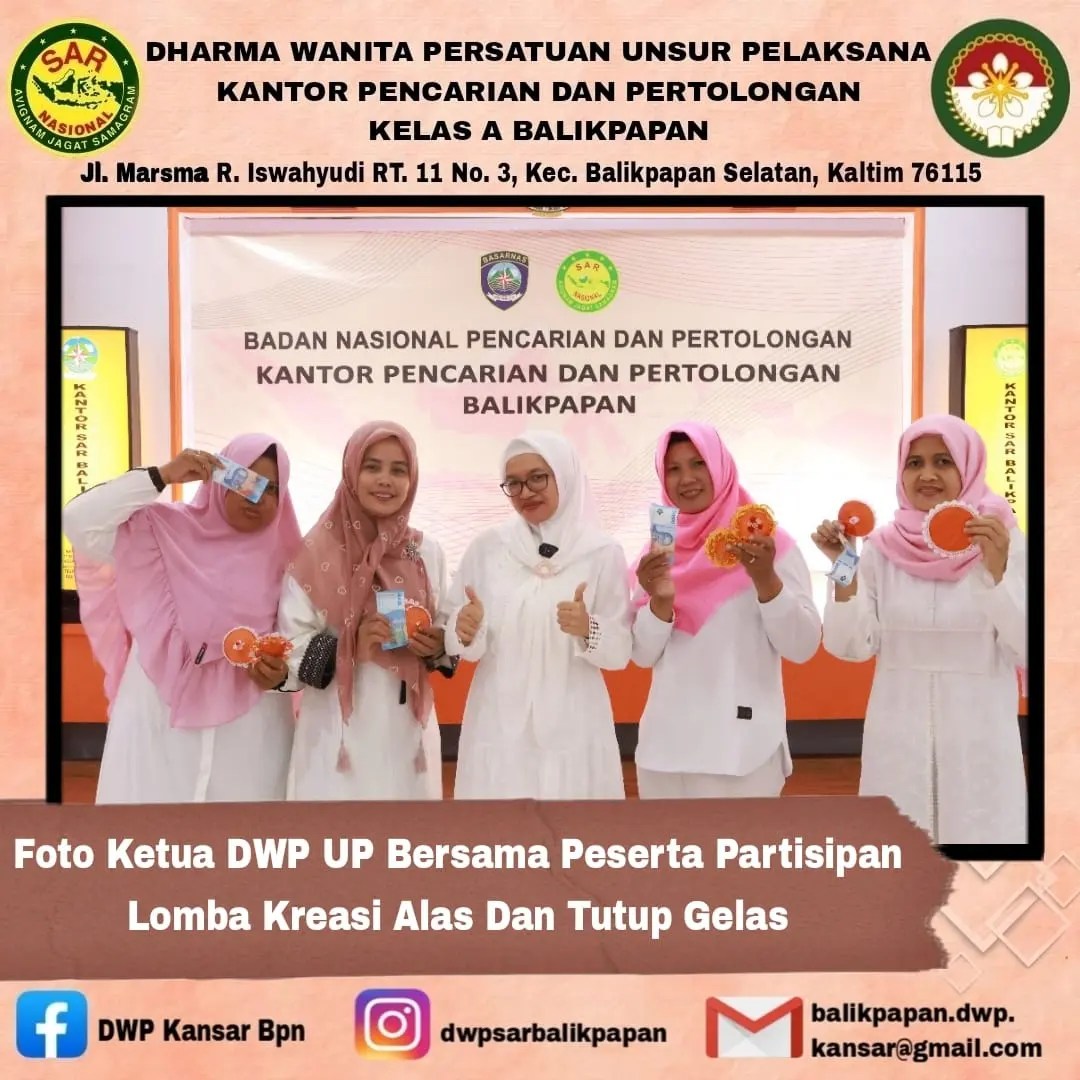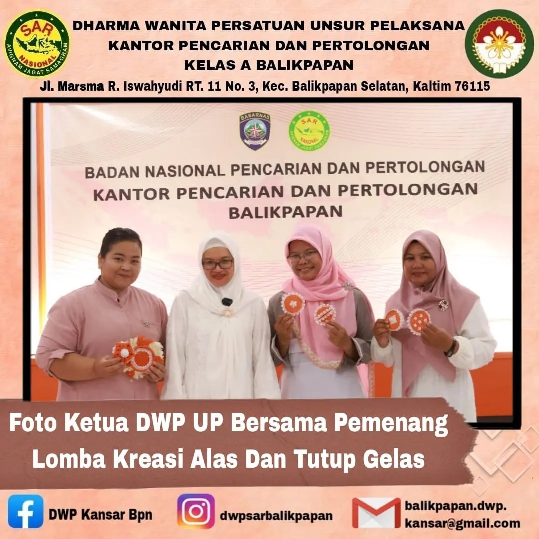 Kamis, 4 April 2024 Bidang Pendidikan DWP UP Kantor Pencarian dan Pertolongan Kelas A Balikpapan menyelenggarakan kegiatan lomba menghias tutup dan alas gelas
