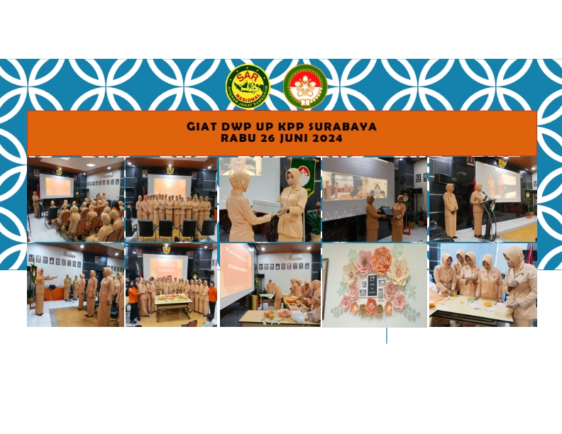Dharma Wanita Persatuan UP Kantor Pencarian dan Pertolongan Surabaya melaksanakan pertemuan rutin sekaligus pisah sambut pejabat eselon IV di lingkungan Kantor Pencarian dan Pertolongan Surabaya. Ny. Ira Mahmud selaku istri dari kasie Ops dan Siaga harus pindah tugas ke Jakarta dan Ny. Rosy Octavino istri dari Pegawai KPP Surabaya yang pindah tugas ke Denpasar, Bali. selain kegiatan tersebut DWP UP KPP Surabaya juga menyampaikan materi paper flower dengan narasumber Ny. Novia Andi
