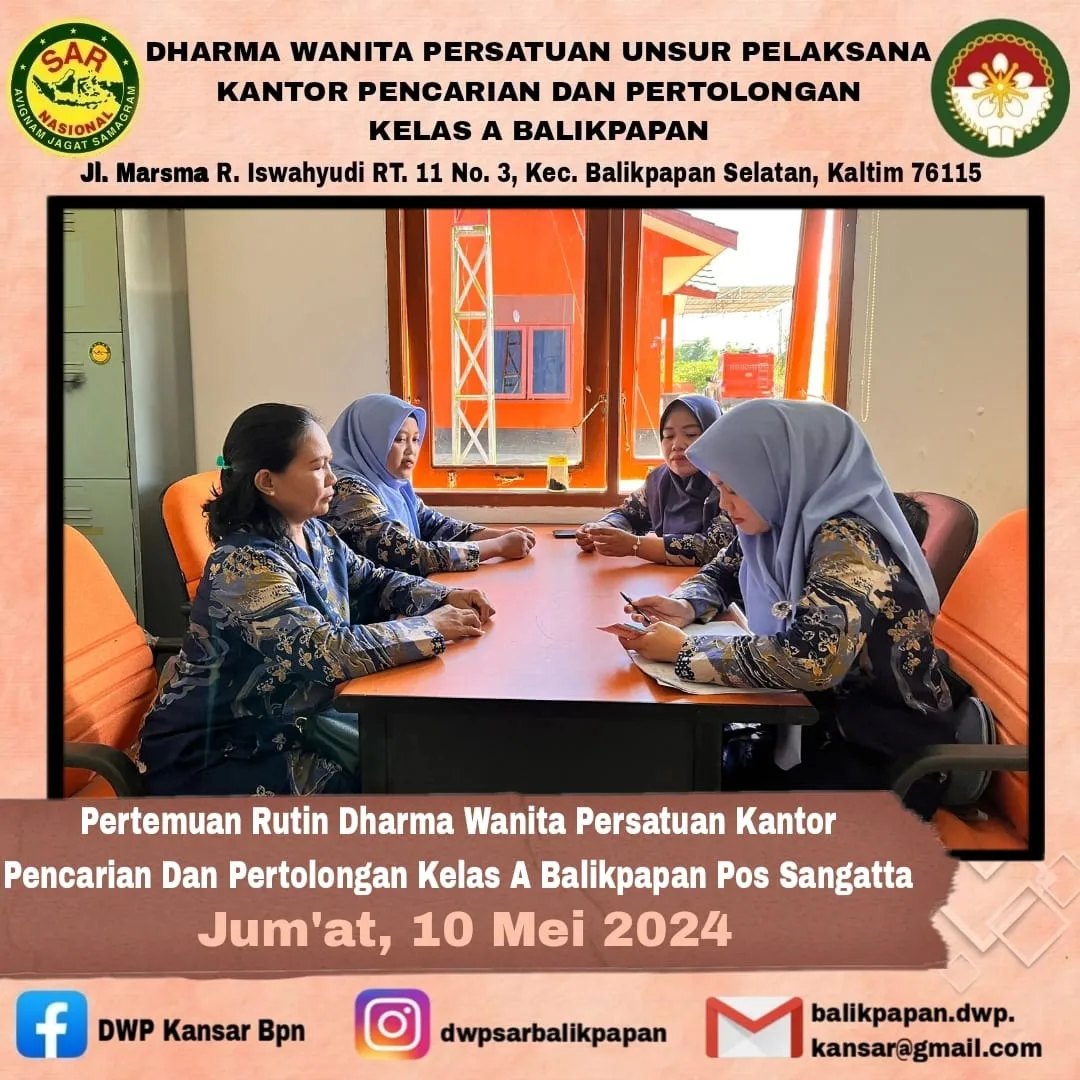 Jumat, 10 Mei 2024 anggota DWP Pos SAR Sangatta mengadakan pertemuan rutin sekaligus ikut terlibat dalam kegiatan SAR Go To School
