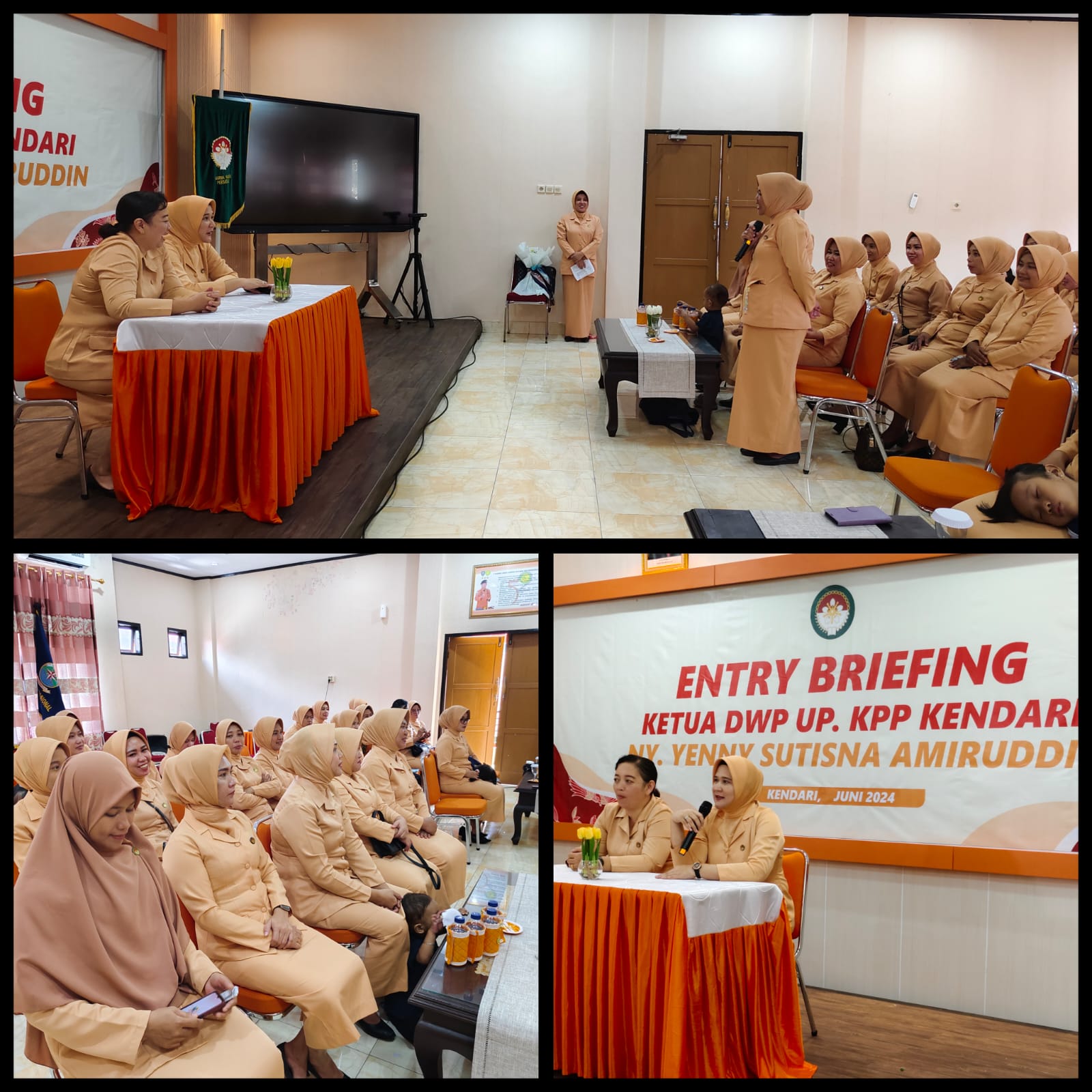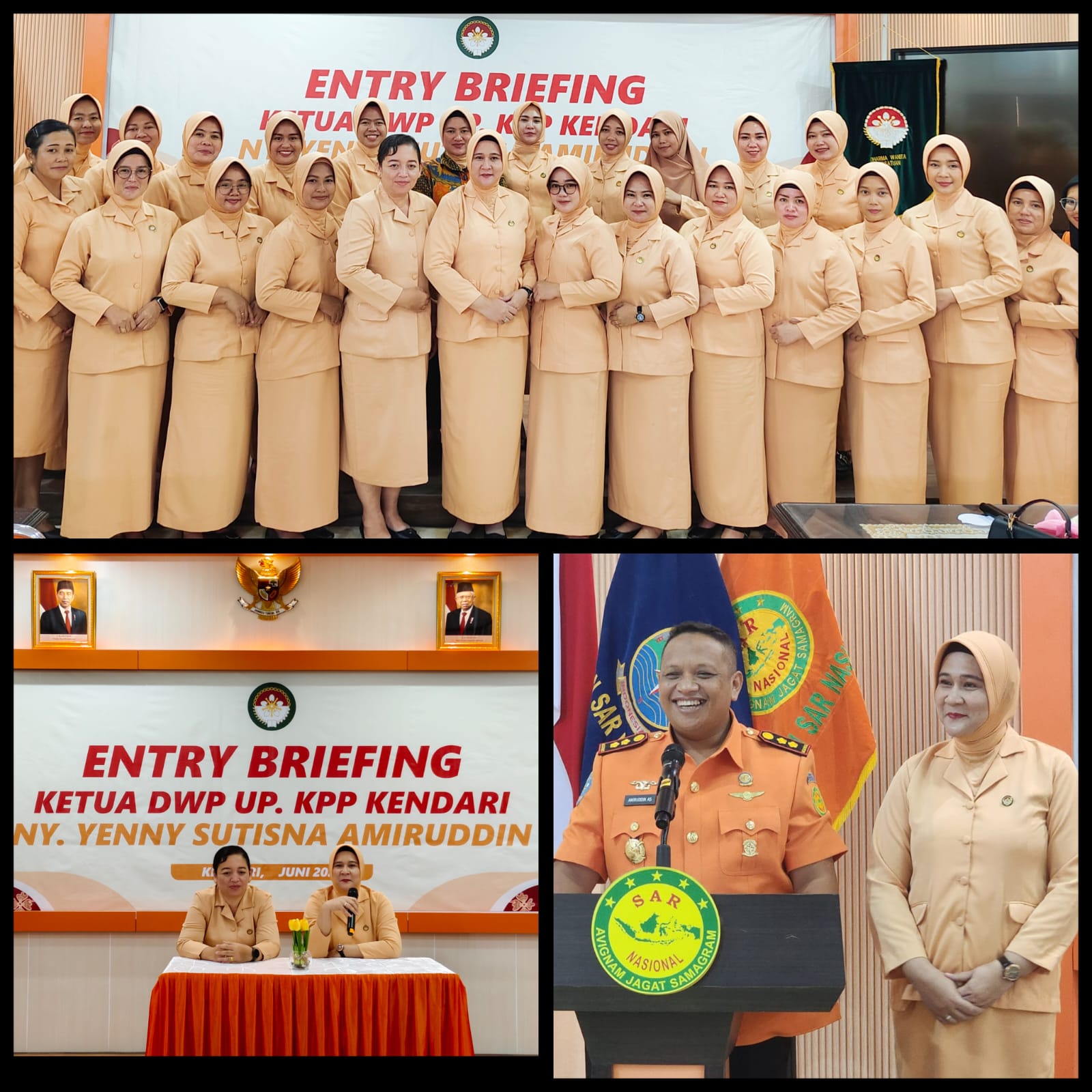 Entry Briefing Ketua DWP UP Kantor Pencaarian Dan Pertolongan Kendari Ny. Yenny Sutisna Amiruddin. Dalam sambutannya beliau menyampaikan agar tetap bekerjasama dan tetap kompak dalam berorganisasi di DWP UP Kantor Pencarian dan Pertolongan Kendari.