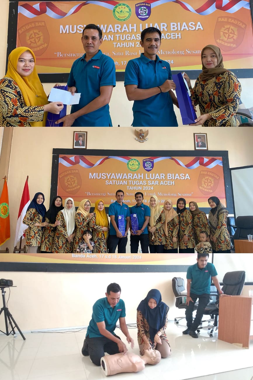 Dharma Wanita Persatuan Unsur Pelaksana Kantor Pencarian Dan Pertolongan Banda Aceh.Melaksanakan Pertemuan Bulanan yang di isi dengan Sosialisasi Dan Prakter Bantuan Dasar Hidup Oleh Pegawai Kantor Pencarian Dan Pertolongan Banda Aceh Bpk. Andrian dan Baharudin bertempat di Aula Kantor Pencarian Dan Pertolongan Banda Aceh