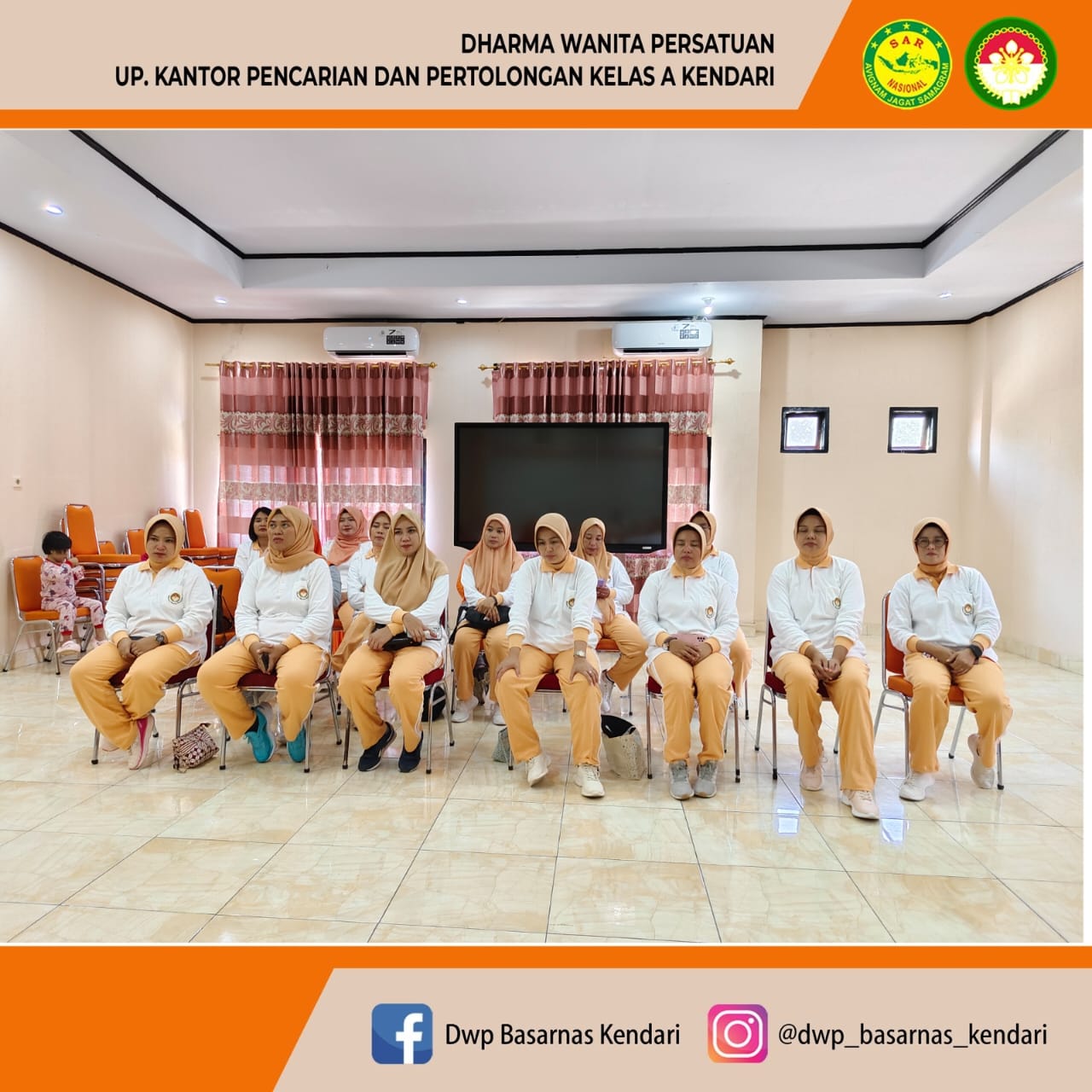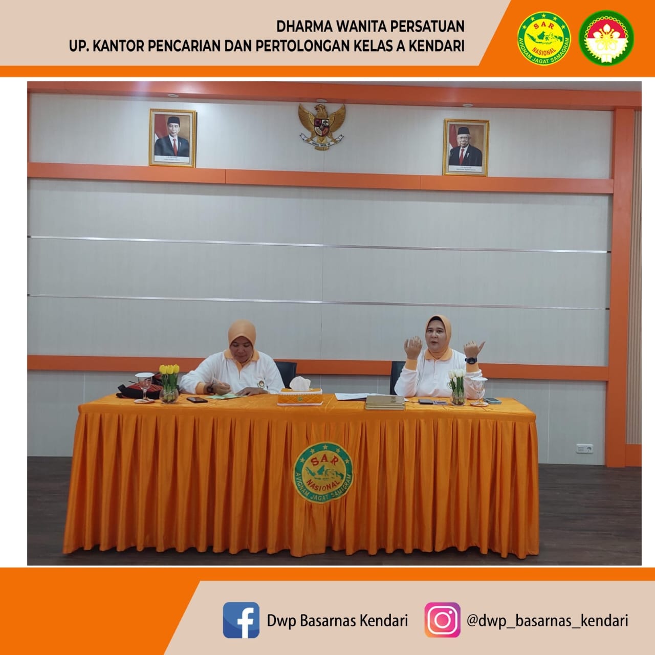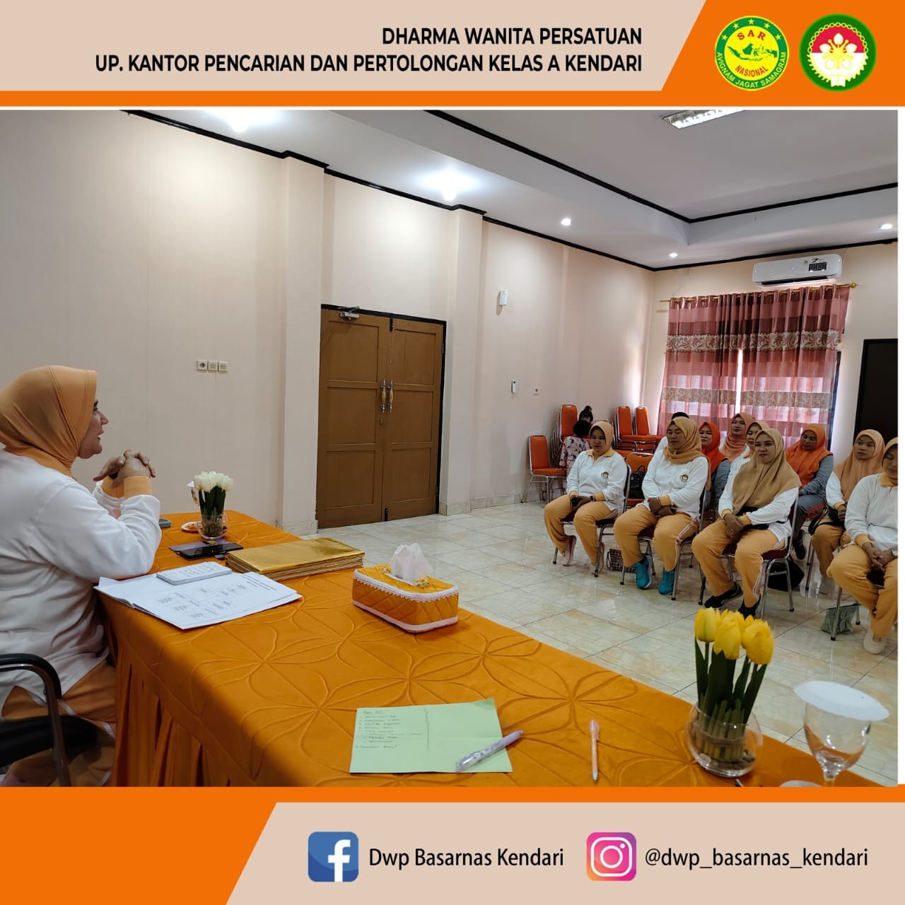 Ketua DWP UP Kantor Pencarian dan Pertolongan Kendari Ny. Yenny Sutisna Amiruddin melakukan diskusi bersama pengurus dan anggota DWP lainnya terkait perbaikan ruangan dan administrasi sekretariat DWP.
