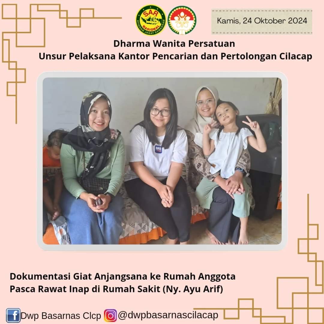 Kamis, 24 Oktober 2024 DWP KPP Cilacap melakukan anjangsana kerumah anggota Ny. Ayu Arif pasca dirawat di RS. kegiatan tersebut diikuti oleh 2 anggota.