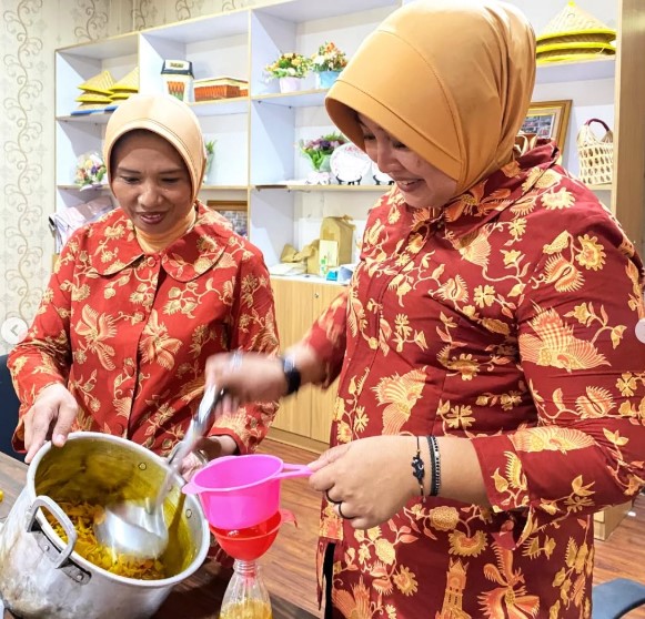 Ibu Ketua, pengurus dan anggota DWP Balai Pelatihan SDM PP Basarnas melaksanakan kegiatan pertemuan bulanan rutin yg di isi dengan membuat minuman herbal