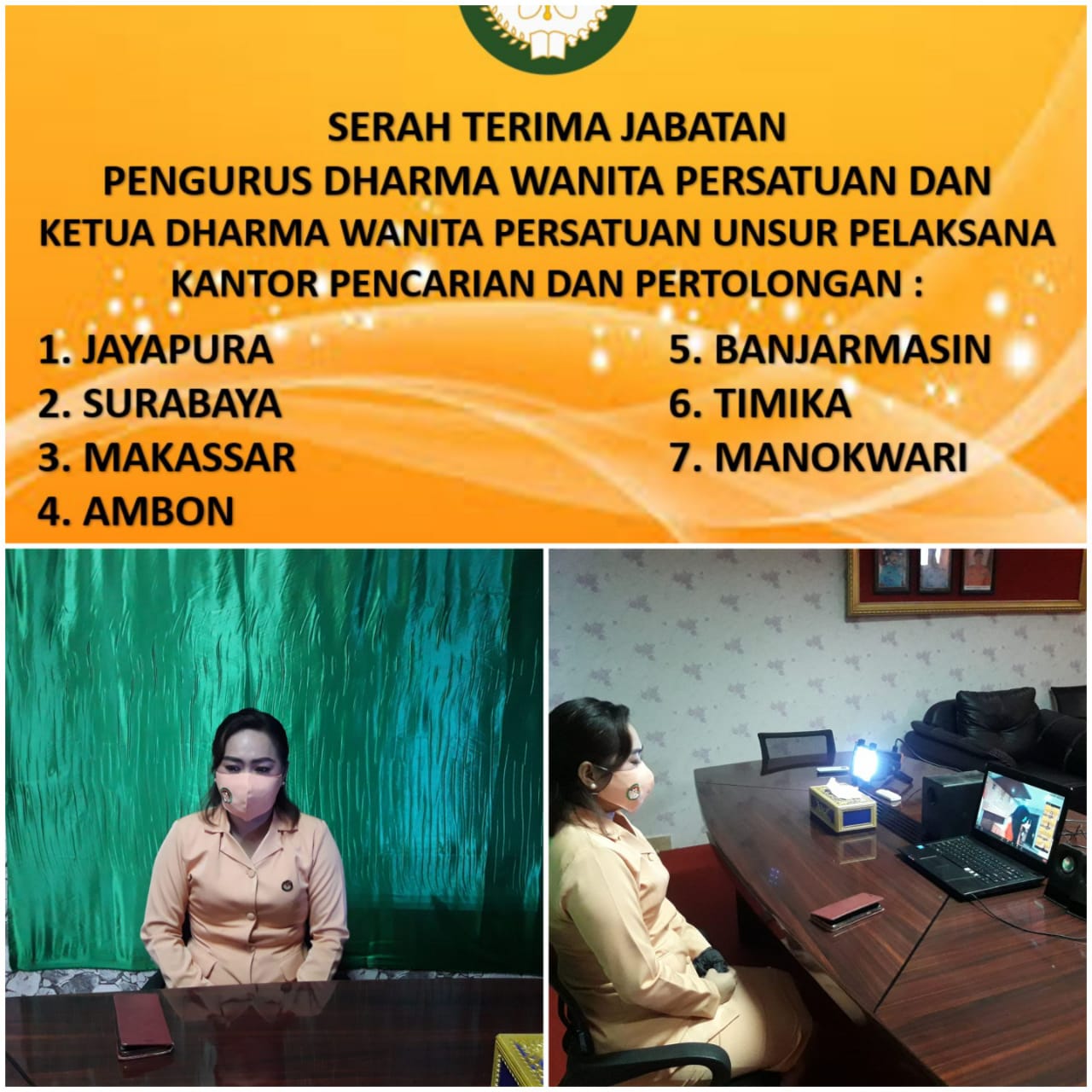 Ketua DWP UP KPP Kupang, menghadiri pelantikan Pengurus DWP Basarnas pusat dan pelantikan Ketua UP Jayapura, Surabaya, Ambon,Makassar, Timika, Manokwari, secara Virtual.