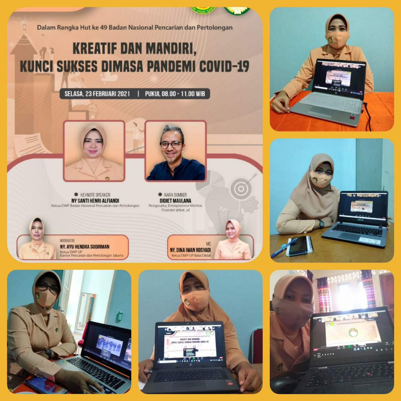 Ketua dan anggota DWP UP KPP Tanjungpinang mengikuti Webinar melaui Virtual Zoom Meeting dengan Tema " Kreatif dan Mandiri,Kunci Sukses Dimasa Pandemi Covid-19". dengan Narasumbet Didiet Maulana.Seorang Pengusaha,Enterpreneur Mentor,Founder @ikat_id