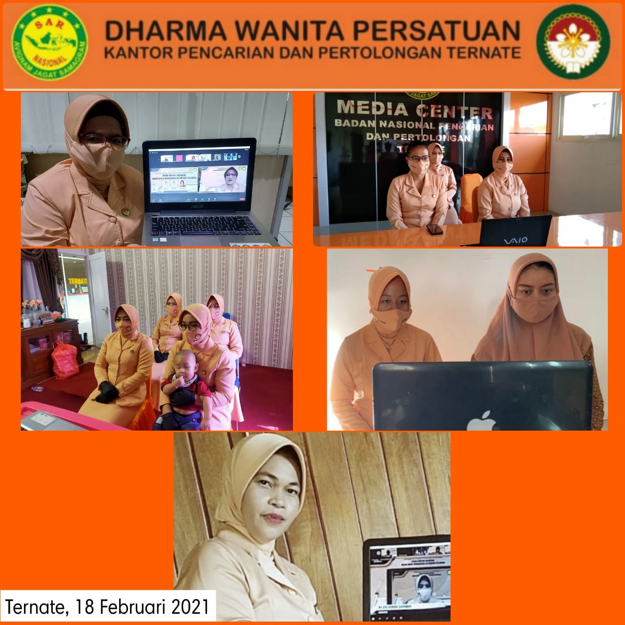 Tanggal 18 Februari 2021 DWP UP Kantor Pencarian dan Pertolongan Ternate beserta anggota DWP Pos SAR Tobelo, Unit Siaga SAR Morotai dan Unit Siaga SAR Bacan mengikuti Webinar I dalam rangka HUT Ke-49 Badan Nasional Pencarian dan Pertolongan dengan Tema " PERAN PENTING VAKSINASI DALAM UPAYA PENINGKATAN KETAHANAN KELUARGA". Webinar dilaksanakan secara virtual melalui Aplikasi Zoom Meeting.