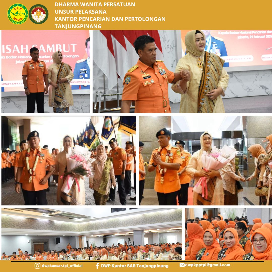 Senin, 24 Februari 2025, Ketua Dharma Wanita Persatuan Unsur Pelaksana Kantor Pencarian dan Pertolongan Tanjungpinang, Ny. Pipit Fazzli mengikuti kegiatan Passing Out Kepala Badan Nasional Pencarian dan Pertolongan Bapak Marsekal Madya TNI Kusworo S.E.,M.M dan Ketua Dharma Wanita Persatuan Badan Nasional Pencarian dan Pertolongan Ibu Ika Kusworo, yang bertempat di Gedung Basarnas Jakarta.