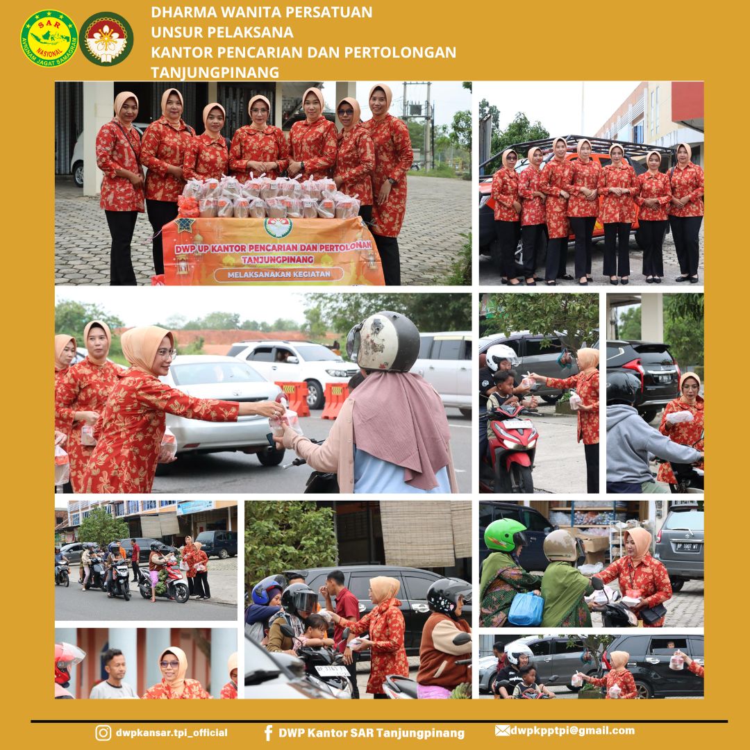 Jumat, 21 Maret 2025, Ketua Dharma Wanita Persatuan Unsur Pelaksana Kantor Pencarian Dan Pertolongan Tanjungpinang Beserta Pengurus dan Anggota Melaksanakan Kegiatan Berbagi Takjil Gratis di Bulan Suci Ramadhan Pada Minggu Ketiga, Adapun Kegiatan tahunan ini diikuti Anggota DWP UP serta Pegawai Kantor Pencarian dan Pertolongan Tanjungpinang.