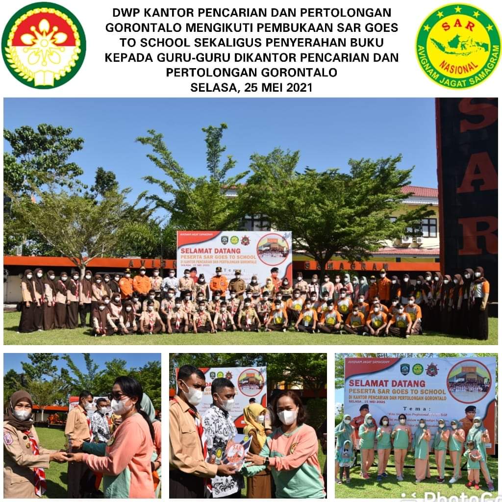 Selasa, 25 Mei 2021 Kegiatan DWP Kantor Pencarian dan Pertolongan (BASARNAS) Gorontalo : Dharma Wanita Kantor Pencarian dan Pertolongan Gorontalo mengikuti Pembukaan SAR Goes to School sekaligus penyerahan Buku kepada Guru-guru di kantor Pencarian dan Pertolongan Gorontalo