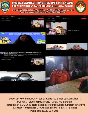 DWP UP KPP Mengikuti Webinar Kelas Ibu Balita dengan Dua Materi: Penyakit Tersering pada balita , Anak Pra Sekolah, Pencegahan COVID-19 pada balita, Mengenali Gejala & Penanganannya dengan Narasumber Dr.Anggia Perdana, So.A, M. Biome, Pada, Selasa 29 Juni 2021,