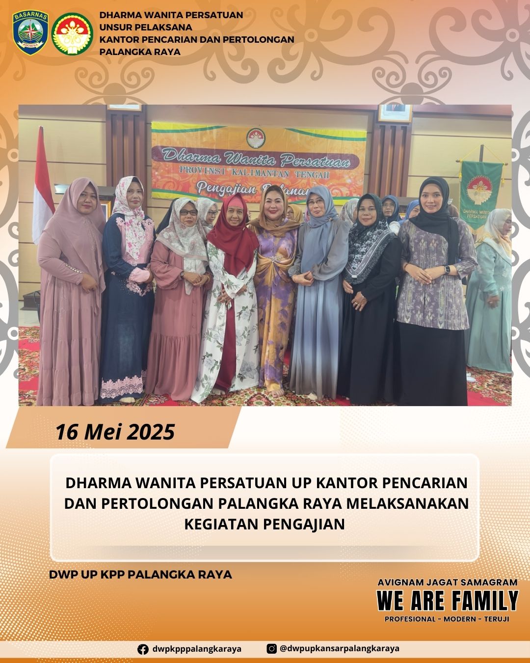 Pengurus Dharma Wanita Persatu UP Kantor Pencarian dan Pertolongan Palangka Raya, mengikuti kegiatan pengajian bertempat di sekretariat DWP Provinsi Kalimantan tengah.