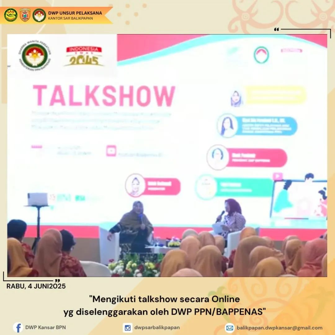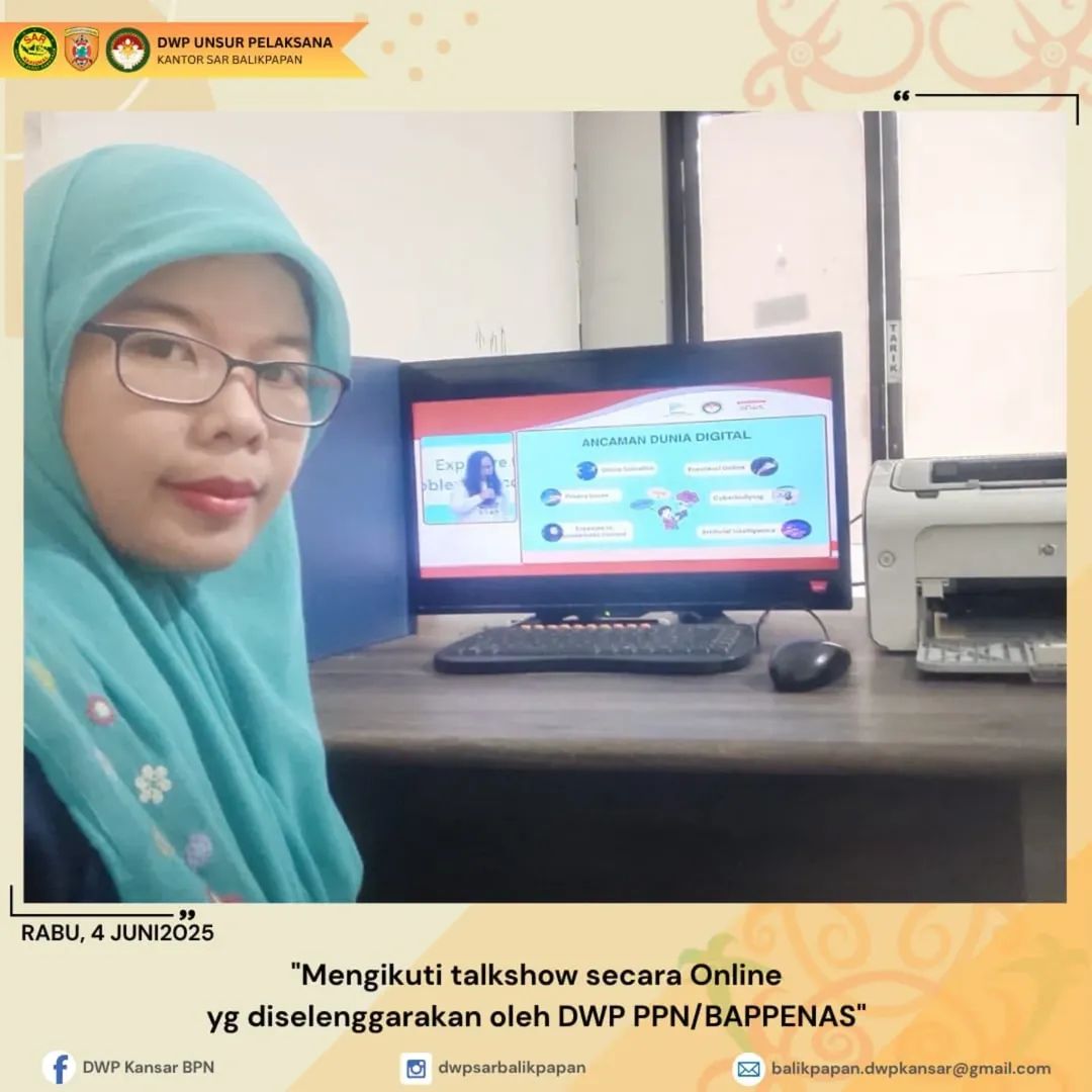 Rabu, 4 Juni 2025 DWP UP Kantor Pencarian dan Pertolongan Kelas A Balikpapan mengikuti talk show secara online yang diselenggarakan oleh DWP PPN/Bappenas