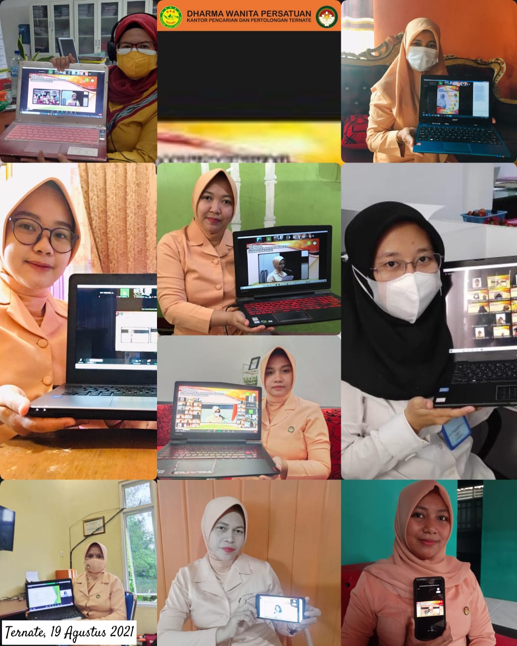 Tanggal 19 Agustus 2021 DWP UP. Kantor Pencarian dan Pertolongan Ternate mengikuti Webinar yang diselenggarakan oleh DWP Basarnas secara virtual melalui Aplikasi Zoom Meeting dengan Tema "ETIKA PERGAULAN DAN KOMUNIKASI DALAM ORGANISASI"