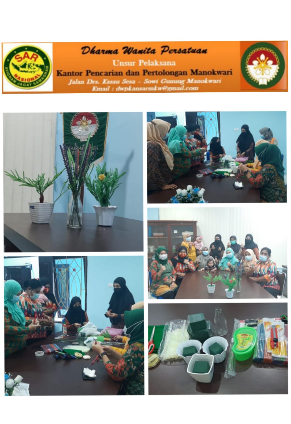 Rabu, 22 September 2021 DWP UP KPP Manokwari mengikuti pelatihan Kerajinan Tangan Membuat Pohon Palem, Bunga Lavender dan Bunga Jam Sembilan menggunakan bahan dari sedotan plastik, yang dibawakan oleh Ny. Yuyun Panji (Bidang Pendidikan DWP UP KPP Manokwari).