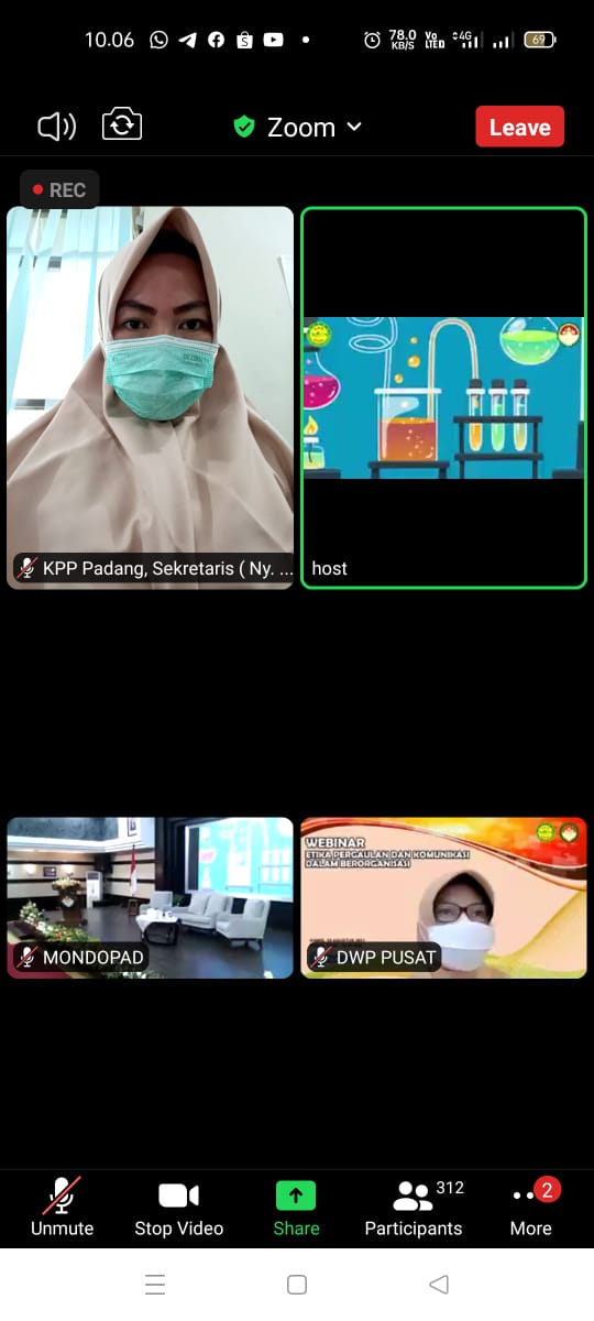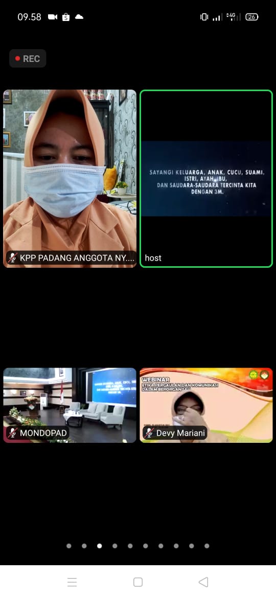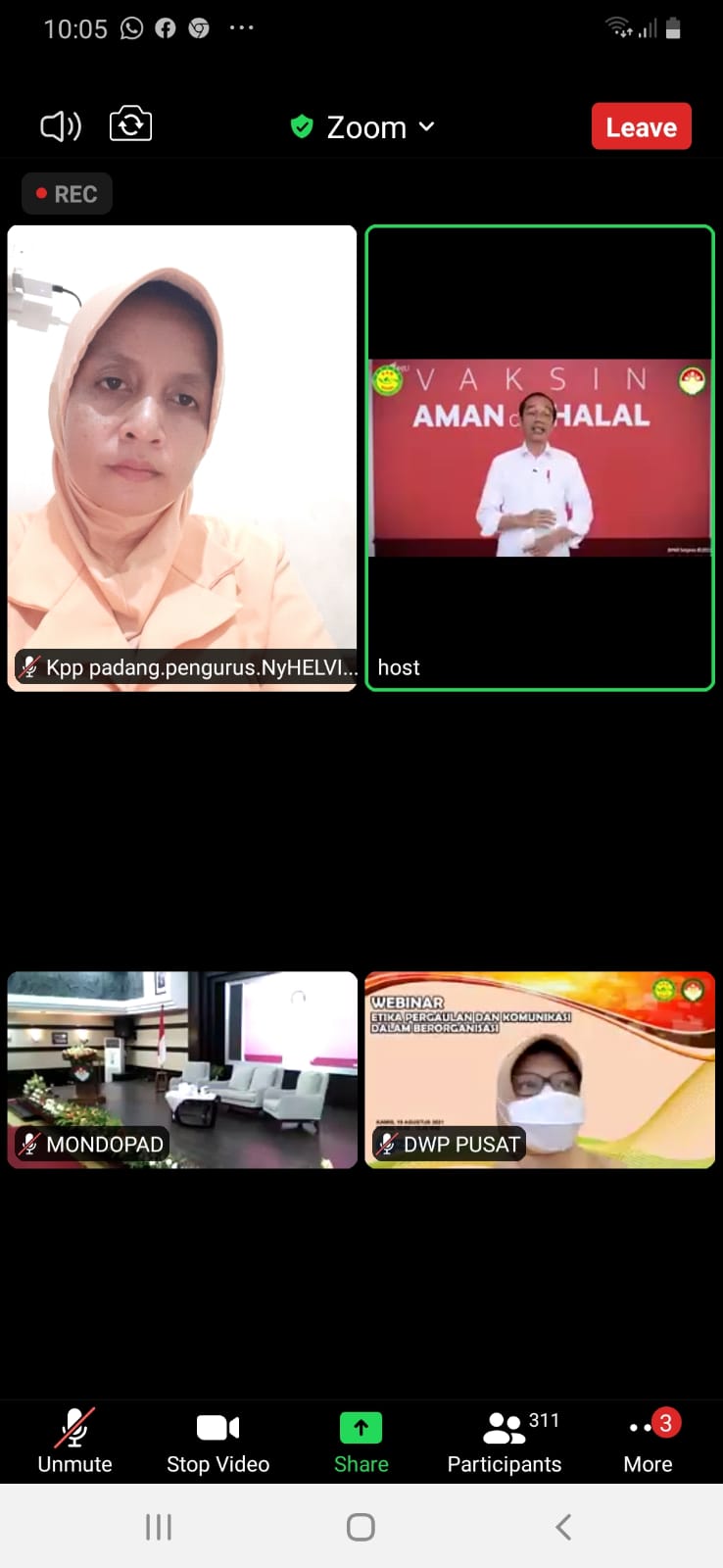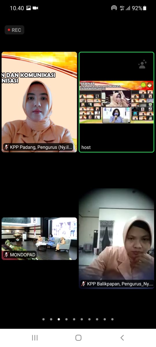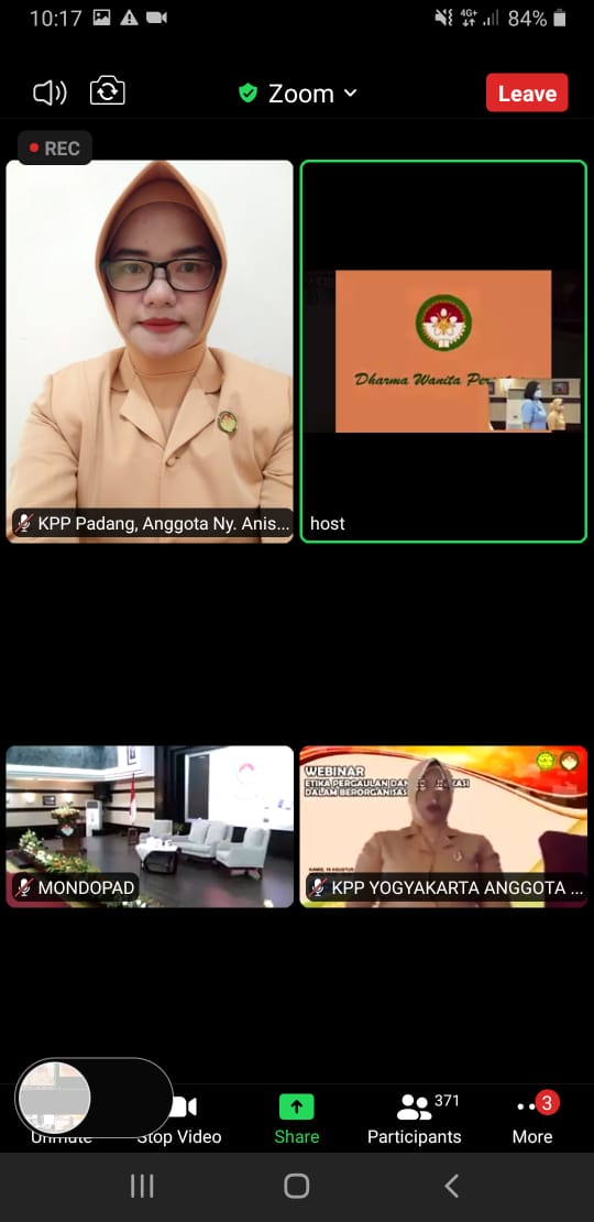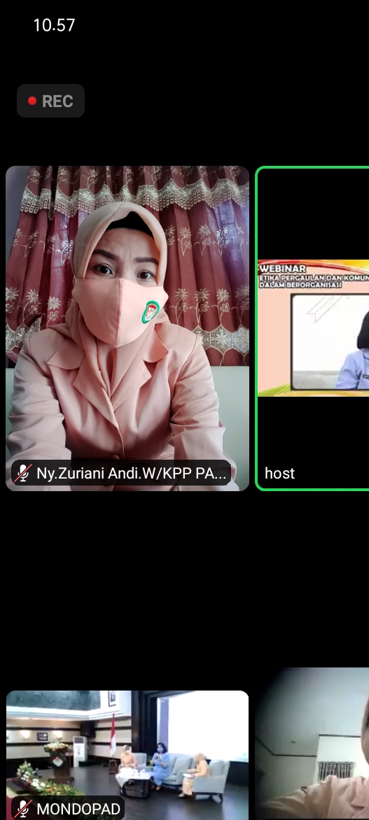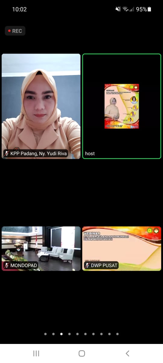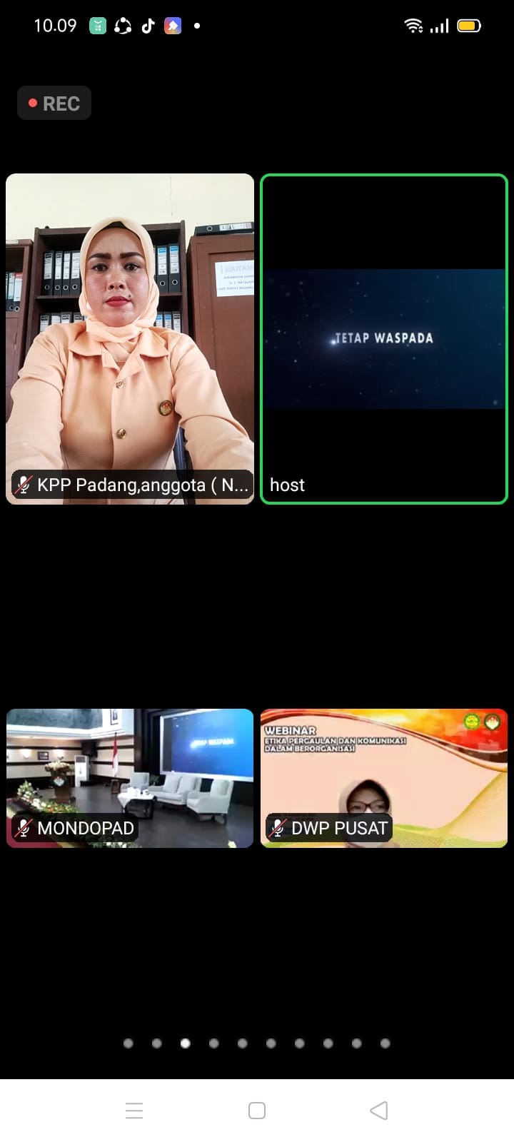 Ibu Ketua beserta Pengurus DWP Kantor Pencarian dan Pertolongan Padang mengikuti kegiatan webinar dengan tema "Etika Pergaulan dan Komunikasi dalam Berorganisasi"