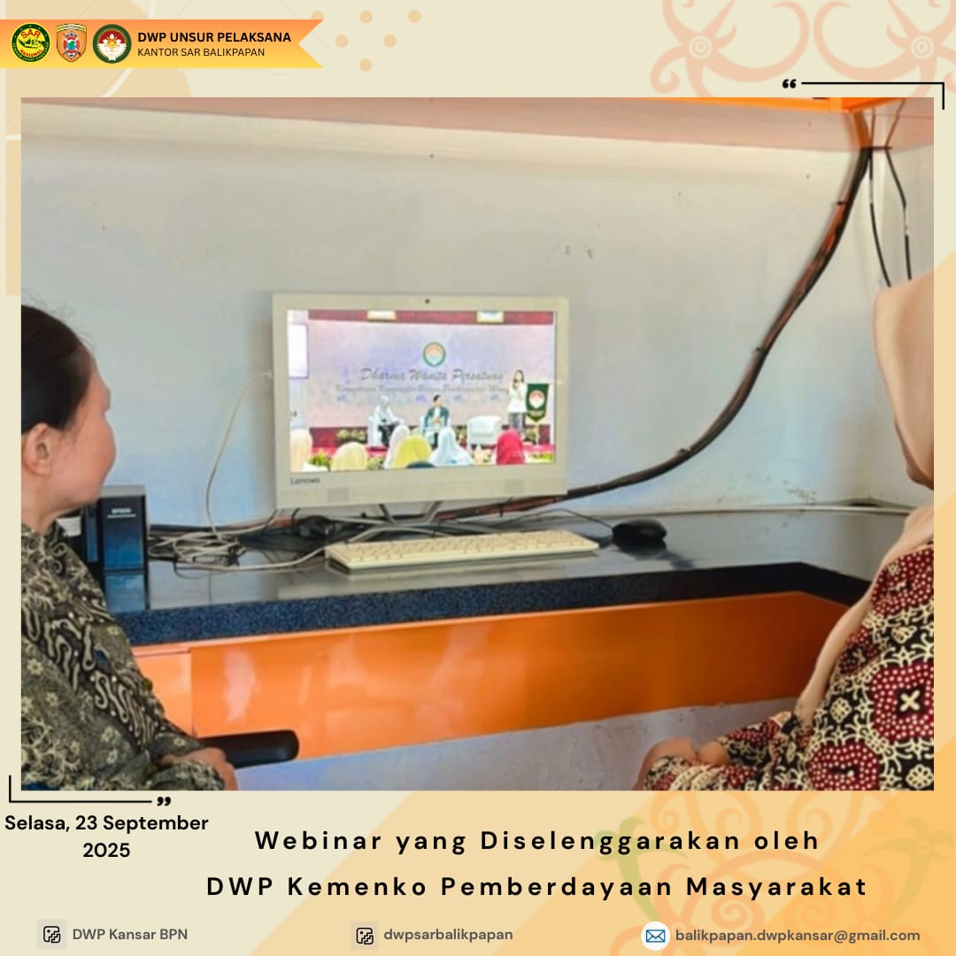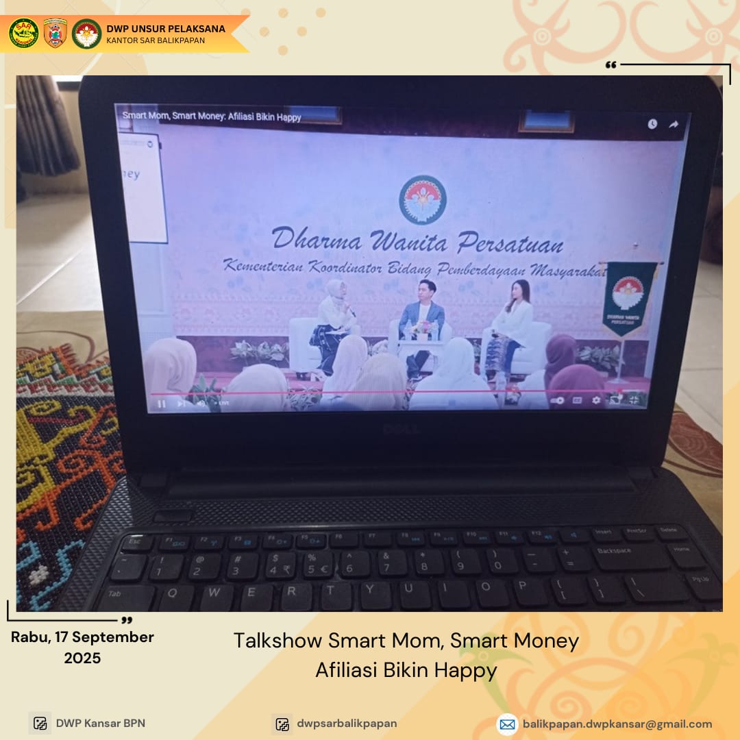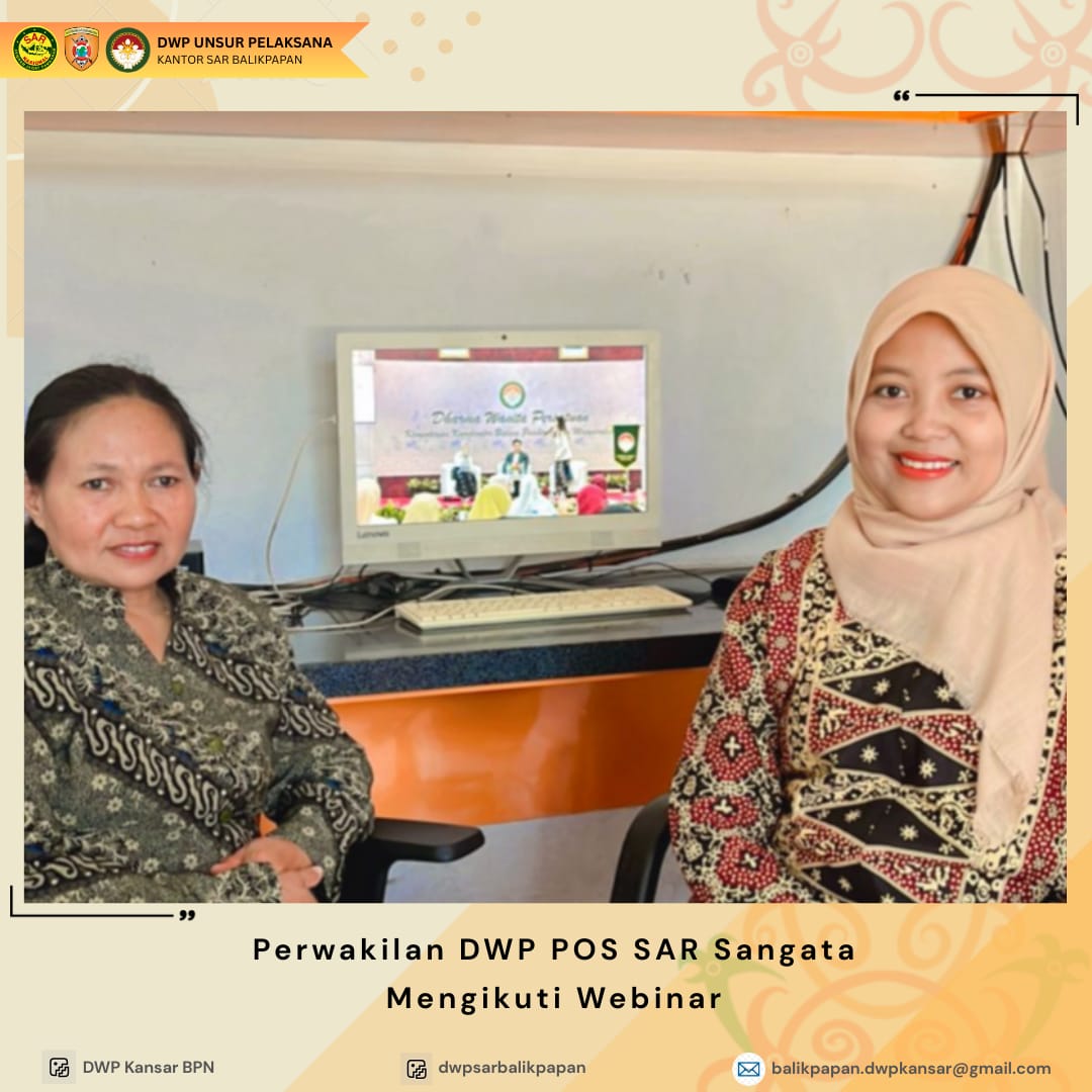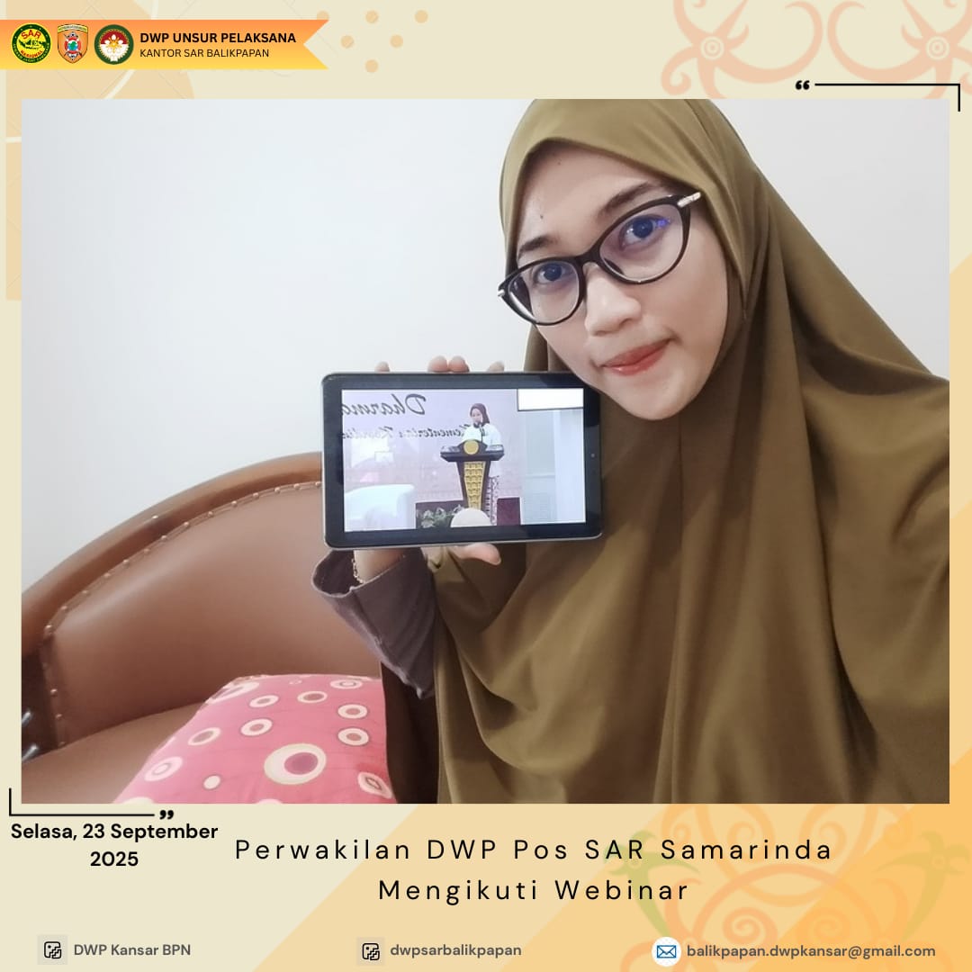 Selasa, 23 September 2025 anggota DWP UP Kantor Pencarian dan Pertolongan Balikpapan, DWP Pos SAR Sangata, dan DWP Pos SAR Samarinda mengikuti webinar talkshow "Smart Mom Smart Money: Afiliasi Bikin Happy" yang diselenggarakan oleh DWP Kemenko Pemberdayaan Masyarakat. Dalam acara ini, para peserta mendapatkan wawasan dan pengetahuan tentang bagaimana menjadi ibu pintar dalam mengelola keuangan keluarga serta memanfaatkan peluang afiliasi untuk meningkatkan pendapatan. Dengan topik yang relevan dan bermanfaat, webinar ini memberikan tips dan strategi praktis bagi para ibu untuk mencapai kebahagiaan finansial dan meningkatkan kualitas hidup keluarga. Melalui diskusi interaktif dan sharing pengalaman, webinar ini menjadi ajang yang inspiratif dan edukatif bagi para peserta,.