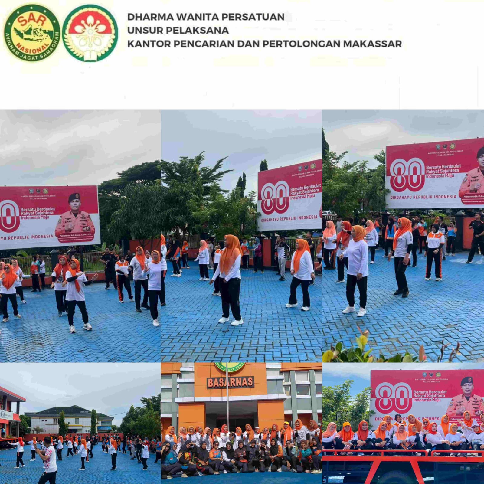 Jumat 30/01/2026 DWP UP KPP Makassar mengikuti senam bersama seluruh pegawai yang bertempat di lapangan Kantor Pencarian dan Pertolongan Makassar