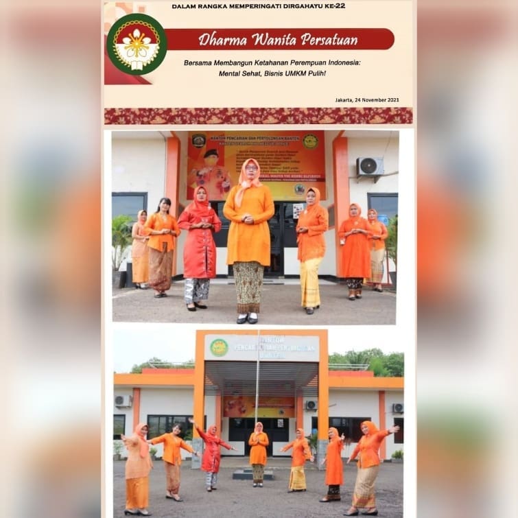 Pengurus DWP UP KPP Banten melaksanakan video dan photoshoot yang berlokasi di Kantor Pencarian dan Pertolongan Banten dan KN SAR TETUKA sebagai bentuk partisipasi dalam rangka HUT DWP yang ke 22. Kegiatan ini berlangsung dengan prokes yang sesuai prosedur.