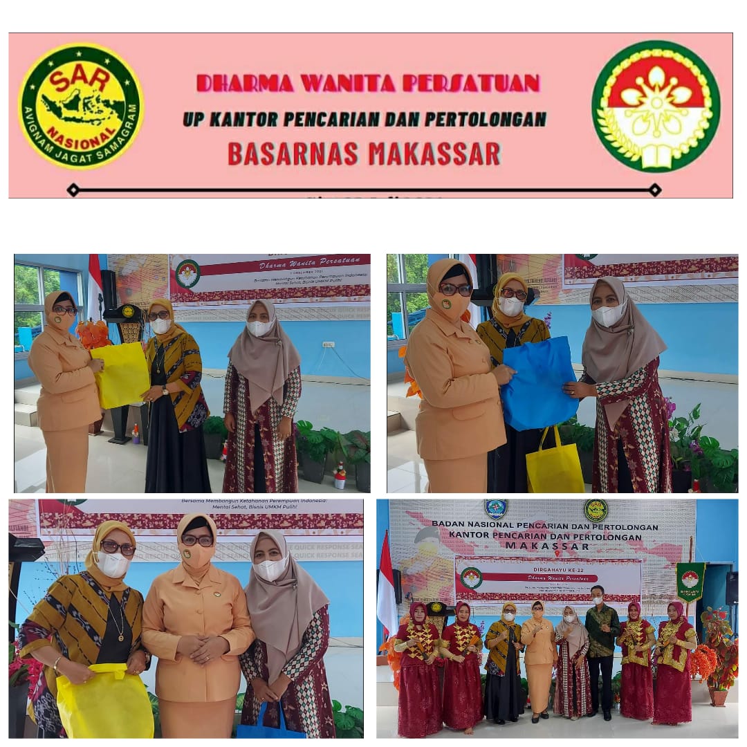 DWP UP KPP Makassar melaksanakan seremoni HUT DWP ke 22 tahun dan Ketua DWP UP Ny.Hasnawati Djunaidi menyerahkan cinderamata kepada para purnabakti yang bertempat di lantai II gedung Shelter kantor pencarian dan pertolongan makassar