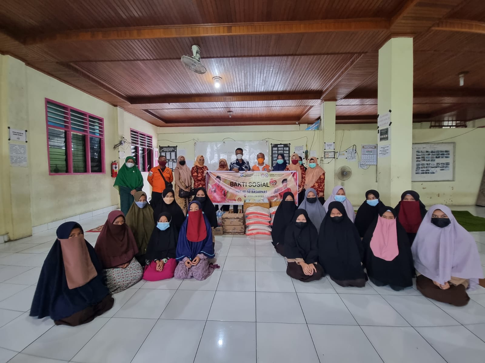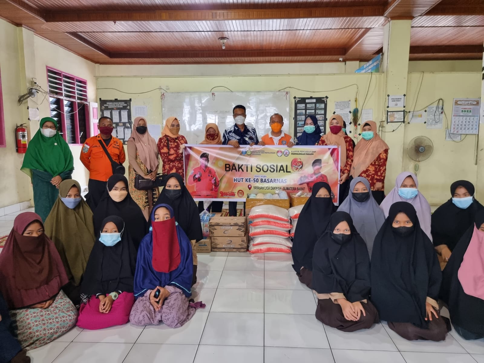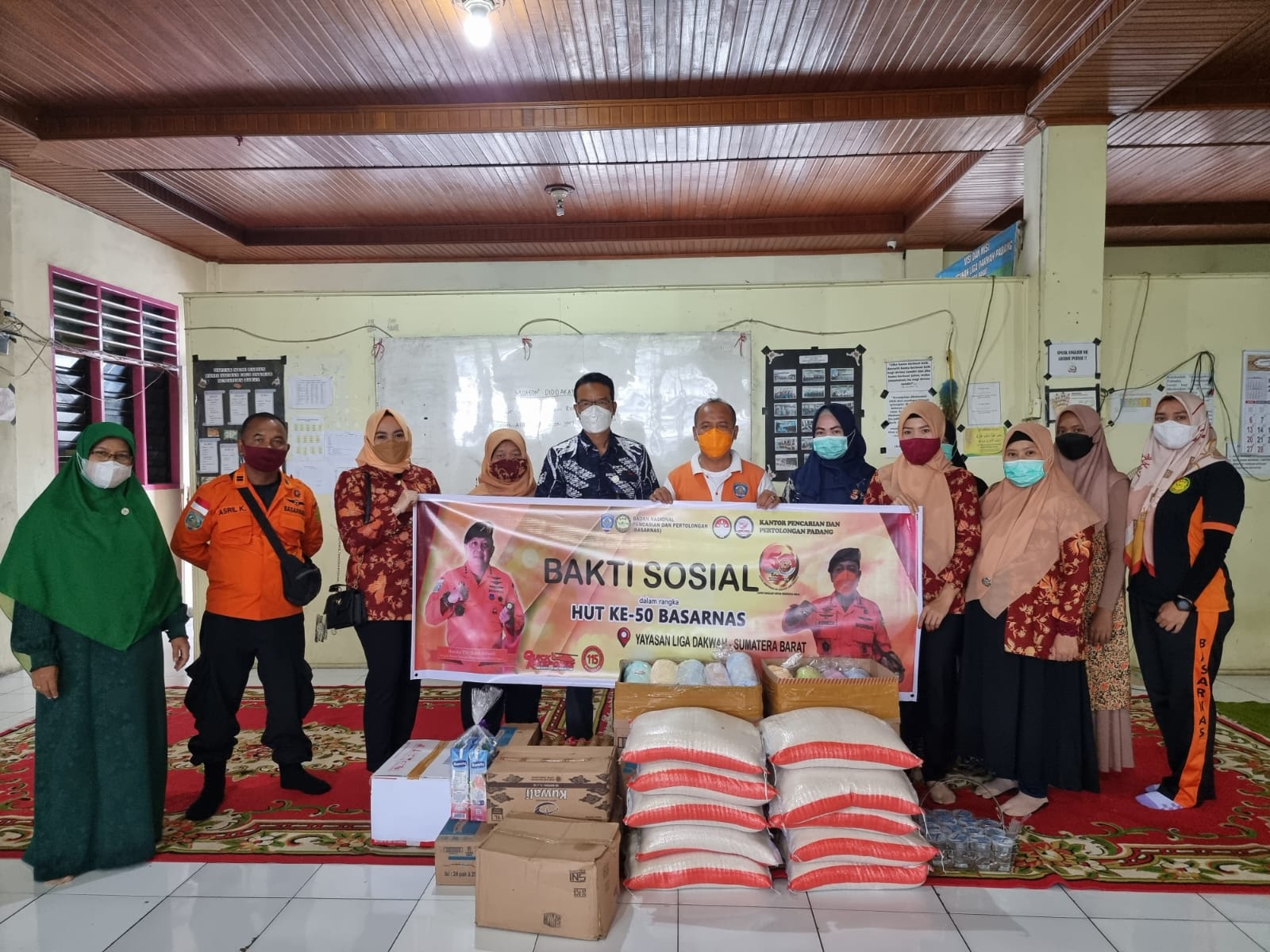 DWP Kantor Pencarian dan Pertolongan Padang mengikuti kegiatan bakti sosial ke panti asuhan liga dakwah di jalan by.pass simpang empat lubuk minturun dalam rangka HUT Basarnas ke 50