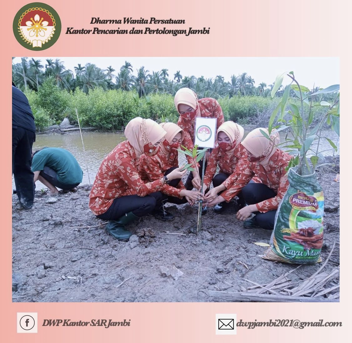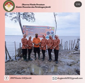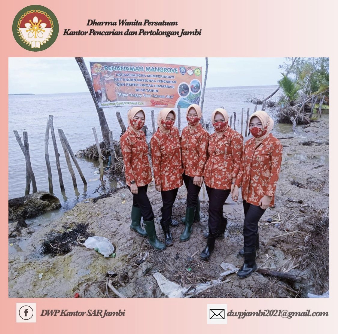 Senin, 14 Februari 2022. Pengurus serta anggota DWP KPP Jambi, mengikuti kegiatan Penanaman Mangrove dan Bantuan sosial terhadap masyarakat sekitar dalam rangka menyambut HUT BASARNAS ke-50, bertempat di Kabupaten Tanjung Jabung Barat. "Cepat Tanggap Indonesia Maju." Diikuti oleh 5 anggota DWP.