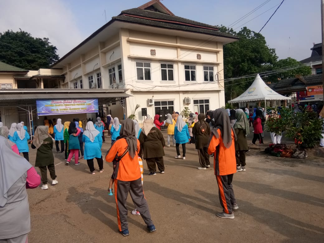 Dharma Wanita Persatuan Kantor Pertolongan dan Pencarian Jambi mengikuti kegiatan senam bersama dikantor Dinas Perkebunan Provinsi Jambi.