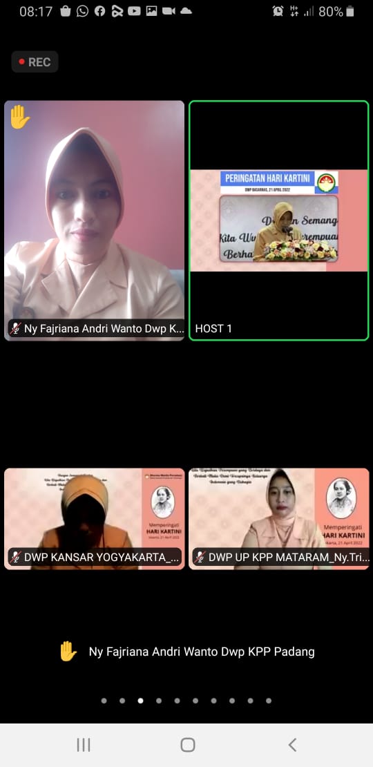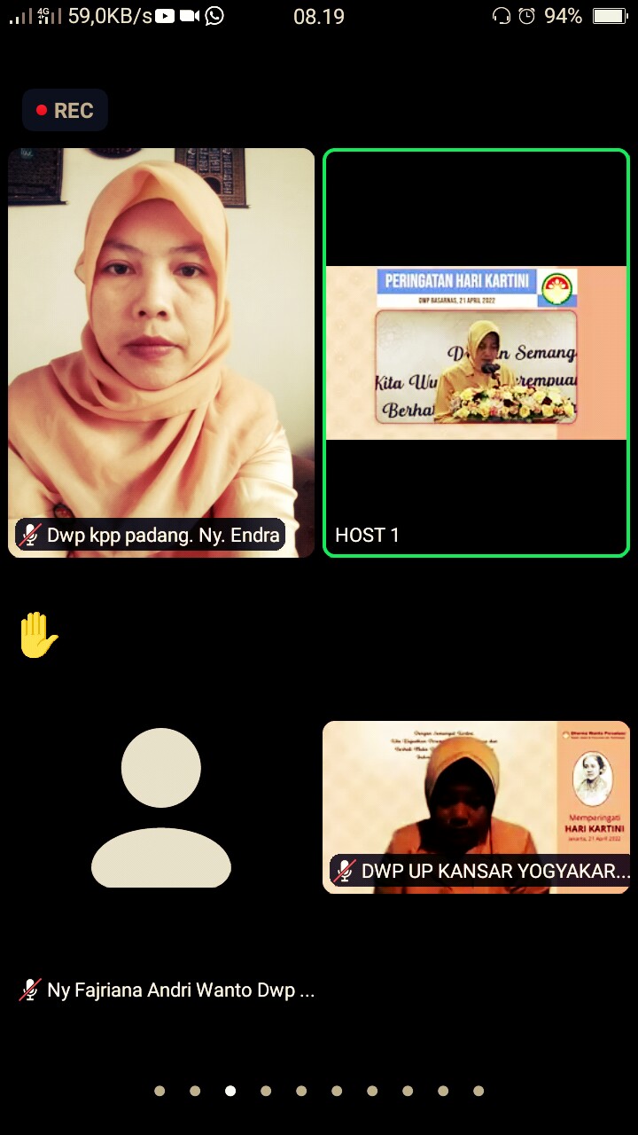 Pada tanggtal 21 April 2022, mengikuti upacara peringatan hari kartini tahun 2022, secara online melalui zoom, yang di ikuti oleh 10 orang Ketua berserta pengurus dan anggota