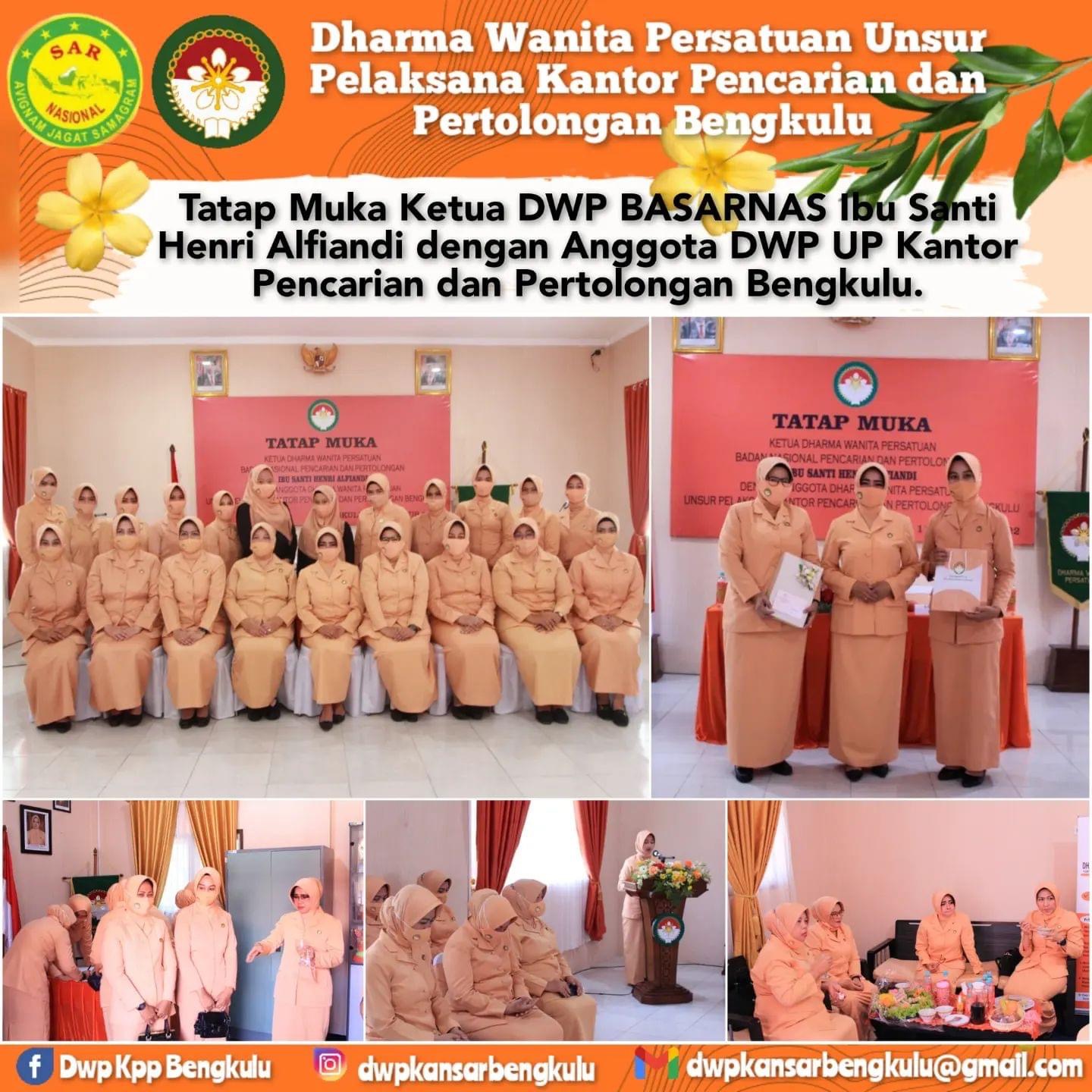 Kamis, 11 Agustus 2022 Ketua Dwp Basarnas beserta pengurus melaksanakan kunjungan kerja di DWP Basarnas bengkulu yang dihadiri oleh 31 anggota di gedung serbaguna kantor basarnas bengkulu