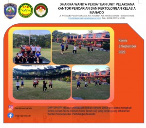 Pada tanggal 8 September 2022 DWP UP KPP Manado melakukan latihan senam untuk persiapan mengikuti Lomba senam SICITA yang berlangsung dihalaman Kantor Pencarian dan Pertolongan Manado