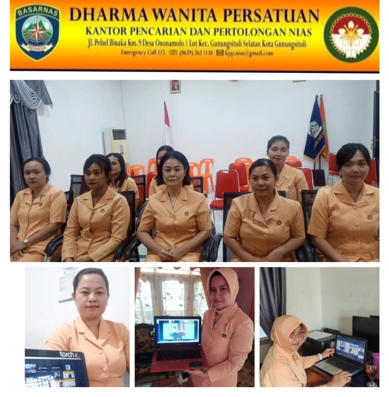 Selasa, 08 November 2022. Wakil Ketua dan Anggota Dharmawanita Persatuan UP Kantor Pencarian dan Pertolongan Nias mengikuti Rangkaian Webinar dalam rangka HUT DWP ke-23 dengan judul "Rumah Tangga Harmonis" Narasumber dr. Dewi Inong Irana, Sp.KKq secara Virtual melalui Zoom Meeting.