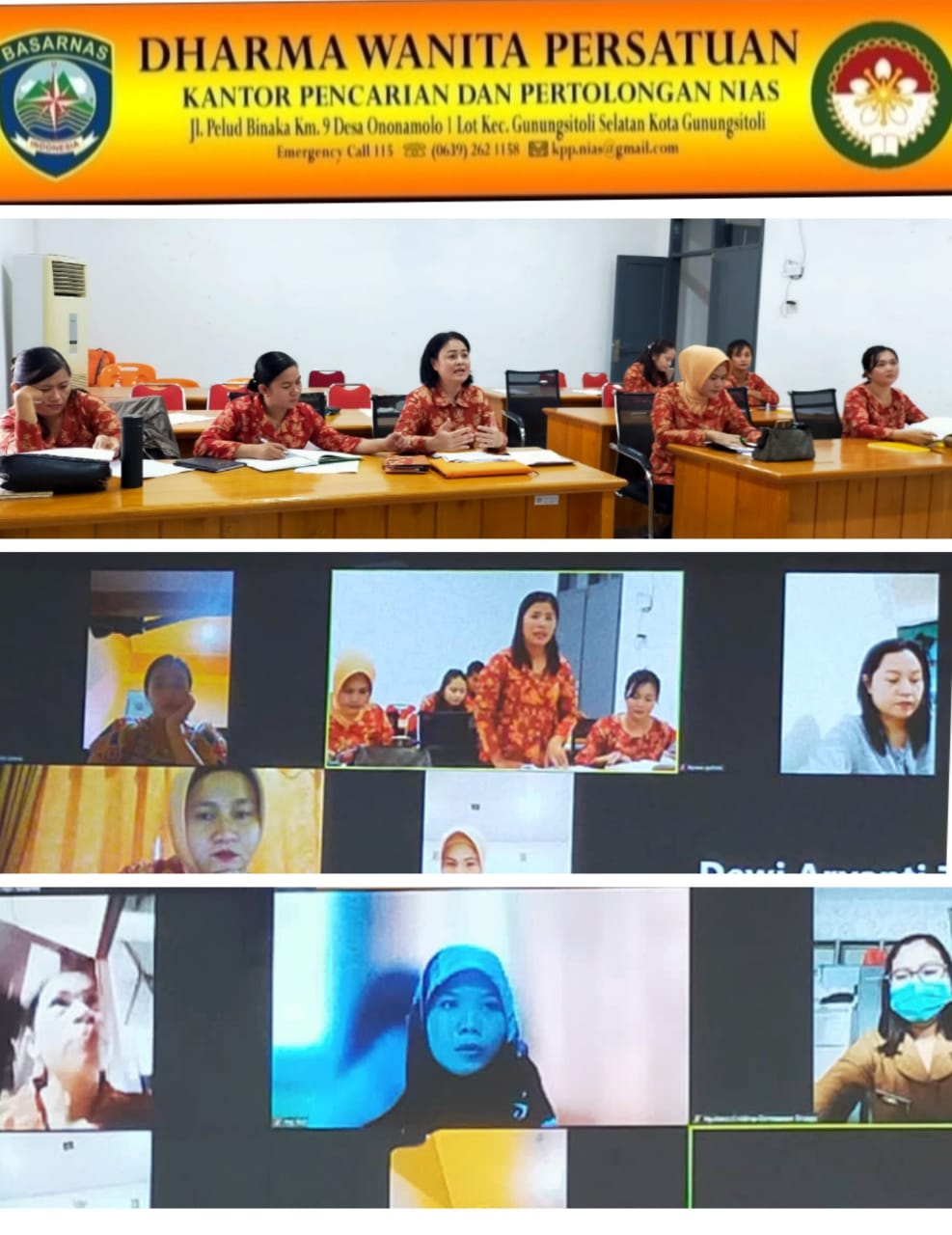 Selasa, 15 November 2022, Plt Ketua Dharma Wanita Persatuan Kantor Pencarian dan Pertolongan Nias bersama pengurus dan anggota, mengadakan rapat membahas Persiapan menyambut Hut DWP ke 23 serta kemantapan kegiatan DWP, Tempat kantor Pencarian dan Pertolongan Nias