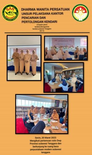 Ssnin,20/03/23 Plt.Ketua DWP Up.KPP Kendari Ny.Syamsuriati Rudi didampingi Wakil ketua Ny.Shery Deni beserta anggota menghadiri Pertemuan Rutin DWP Prov.Sultra yg dilaksanakan di Dinas Perpustakaan dan Arsip Daerah Prov.Sultra, pemateri oleh Ibu DR. Salwiah, S.Pd.,M.Pd dg tema "Perpustakaan adalah Jantung Pendidikan" dan berkunjung ke salah satu ruang baca yang berada di perpustakaan modern sulawesi tenggara.