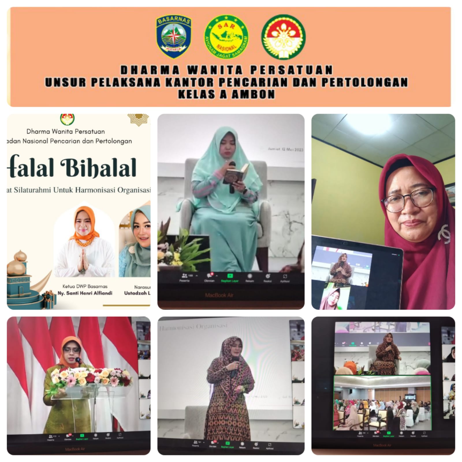 Pada tanggal 12 Mei 2023, Ketua DWP UP KPP Ambon mengikuti zoom Halal bihalal yang diadakan DWP BASARNAS PUSAT dengan tema Perkuat siraturahmi untuk harmonisasi Organisasi dengan narasumber Ustadzah Hj .Liza azizah.