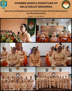 Rabu, 12 Juli 2023. Telah dilaksanakan kegiatan Entry Briefing Ketua DWP UP Balai Diklat Ny. Pika Gede Darmada di Kantor Balai Diklat Cariu Bogor.