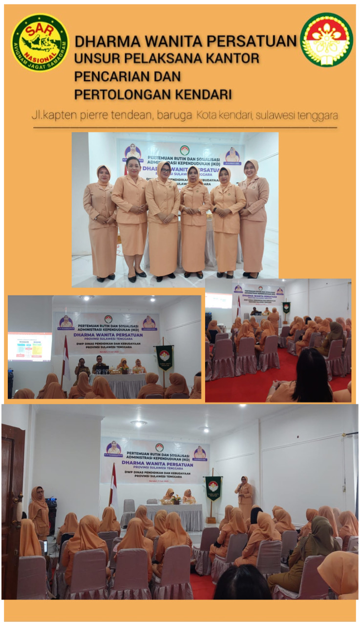 Ketua Dharmawanita Persatuan UP Kantor Pencarian dan Pertolongan Kendari Ny. Mariam Arafah didampingi wakil ketua menghadiri undangan Dharmawanita Persatuan Provinsi Sulawesi Tenggara dalam pertemuan rutin bulanan sekaligus memperkenalkan diri dan bergabung di Dharmawanita Provinsi Sultra