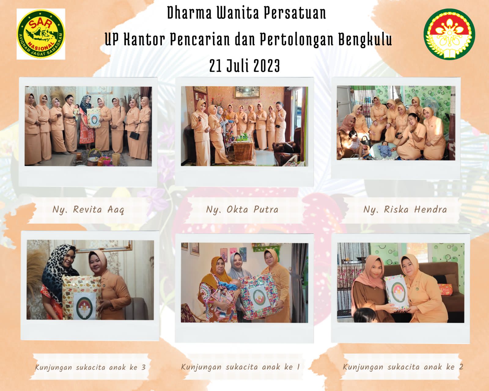 Jumat , 21 Juli 2023. DWP UP KPP Bengkulu usai melaksanakan pertemuan rutin , dilanjutkan dengan Kunjungan Suka Cita Pasca Melahirkan ke Ibu-Ibu anggota DWP UP KPP Bengkulu. Adapun giat kunjungan yg dilaksanakan bersama Ketua DWP , Ny. Rosna Muslikun , bersama Anggota DWP. Kunjungan dilakukan ke 3 Anggota DWP yaitu : 1. Kunjungan sukacita Ny.Riska Hendra 2.Kunjungan sukacita Ny.Okta Andesta. 3. Kunjungan sukacita Ny.Revita Aaq