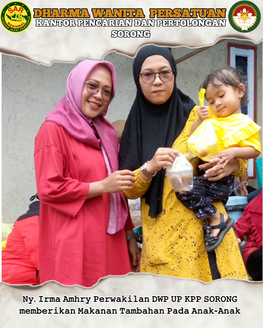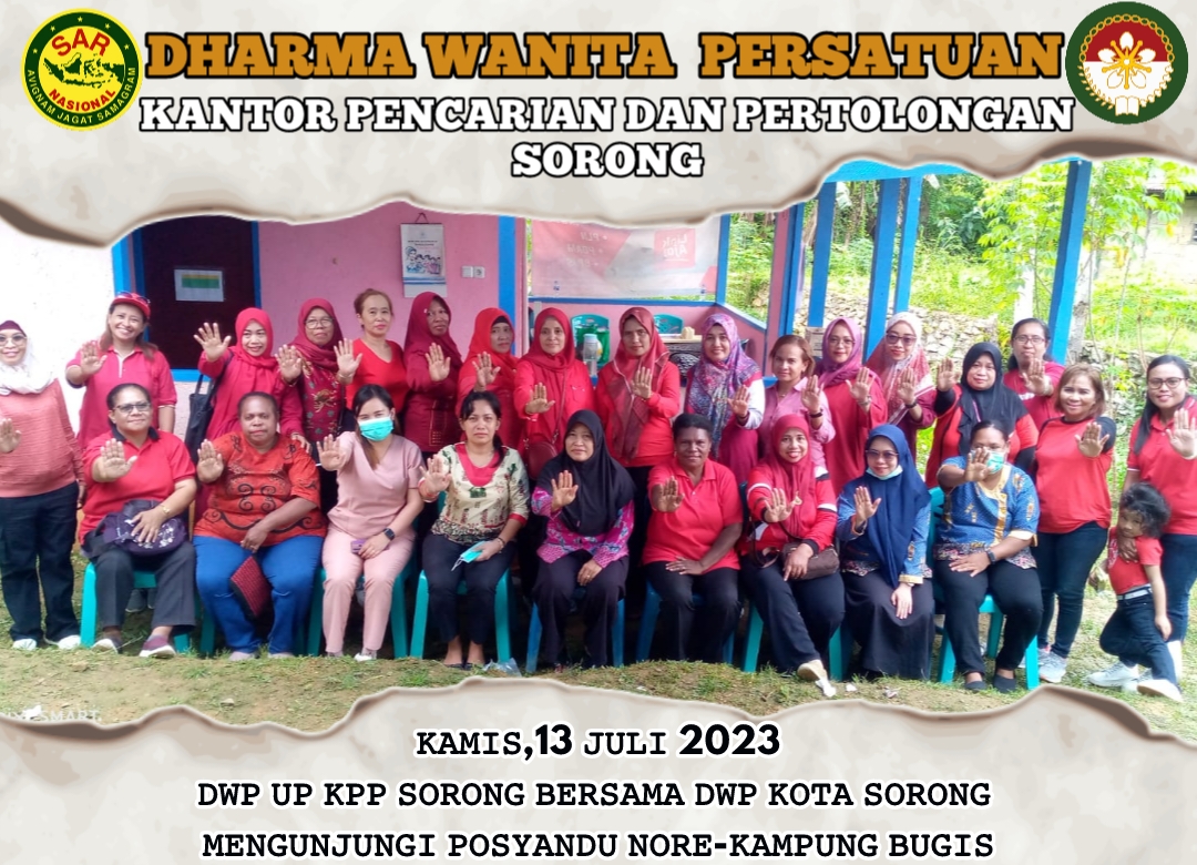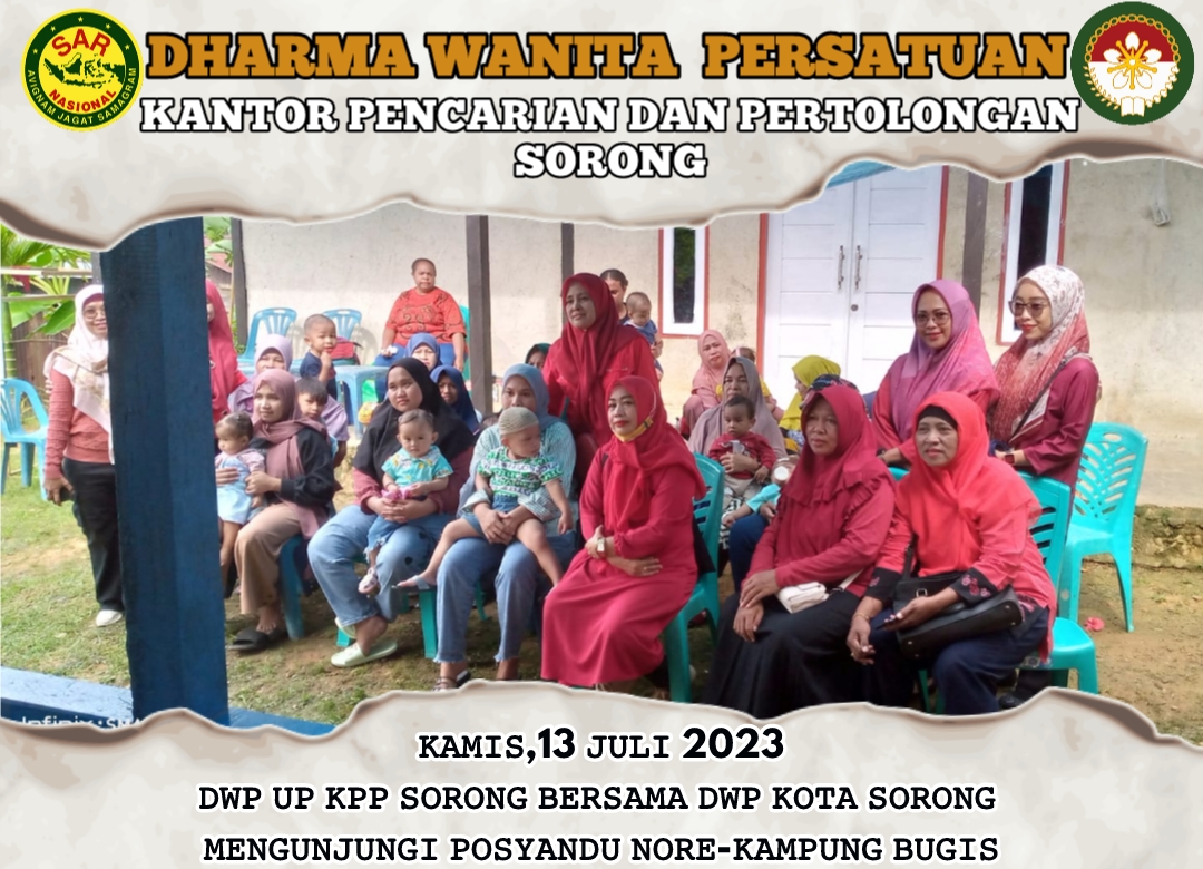 Kamis, 13 Juli 2023 DWP UP Kantor Pencarian dan Pertolongan Sorong Ny.Irma Amhry dan Ny. Ikhe Joko (Bidang Ekonomi) mengikuti Giat Stunting bersama Dharma Wanita Persatuan Kota Sorong, yaitu Tinjau Anak Stunting dan Pemberian Makanan Tambahan berupa Bubur kacang Hijau, Telur dan Susu UHT kepada anak Usia 1-5Tahun. Kegiatan Bertempat di Posyandu NORE-Kampung Bugis Kelurahan Matalamagi Sorong Utara.