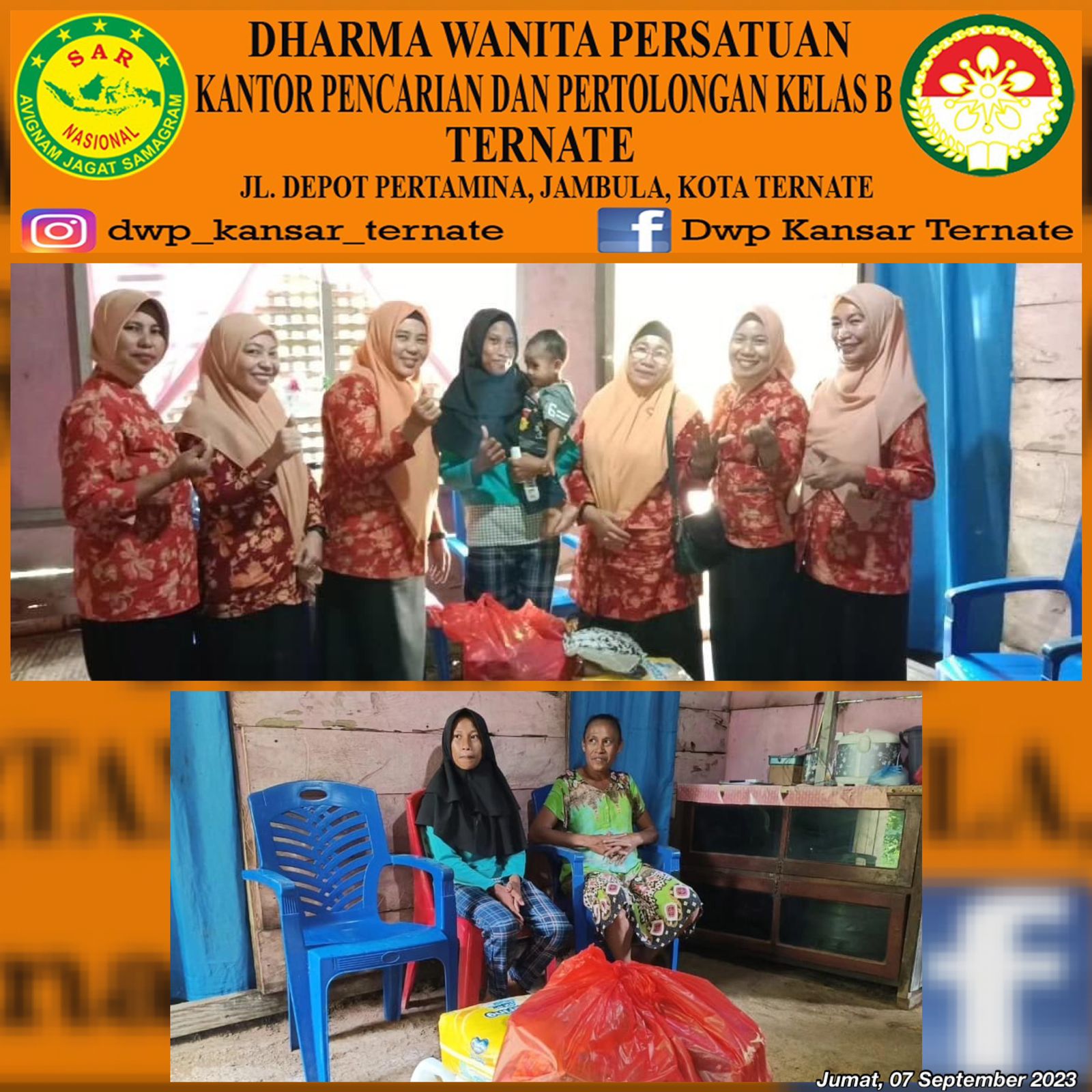 Jumat, 07 September 2023 DWP UP. Kantor Pencarian dan Pertolongan Ternate yang mana diwakili oleh Ibu Armawati Halidin mengikuti kegiatan Penyerahan Paket kepada Ibu Asuh & Anak Asuh , bertempat di Tongole.