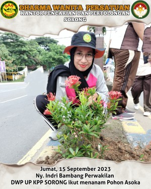 Jumat 15 September 2023 Perwakilan DWap UP KPP SORONG Ny. Indri Bambang selalu Sekretaris mengikuti Giat menanam Pohon Hias yang di adakan GOW(Gabungan Organisasi Wanita) Kota Sorong. Lokasi penanaman di sepanjang Trotoar Lampu Merah Gereja Maranatha Sorong.
